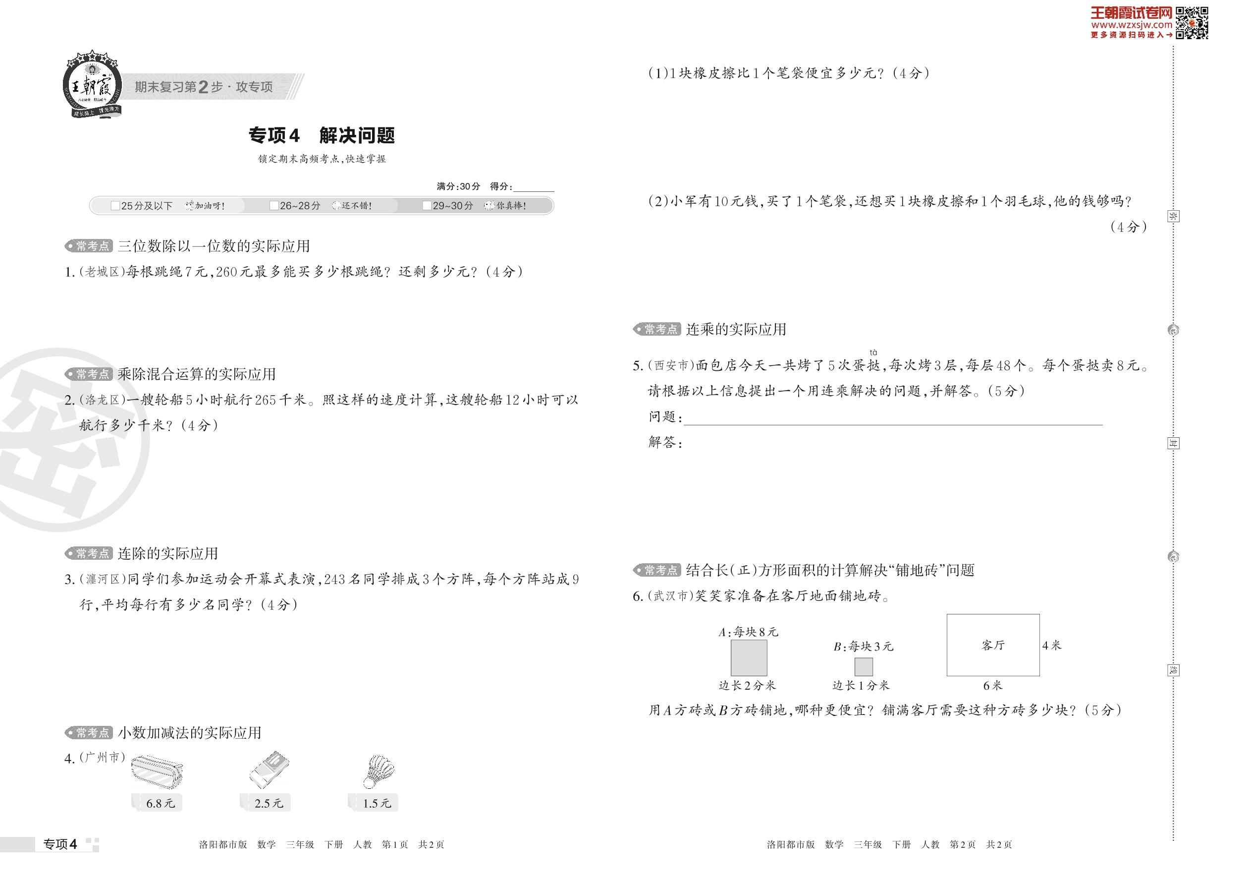 王朝霞期末专项卷——解决问题三年级下册数学(人教版)_R230425162334778【4】