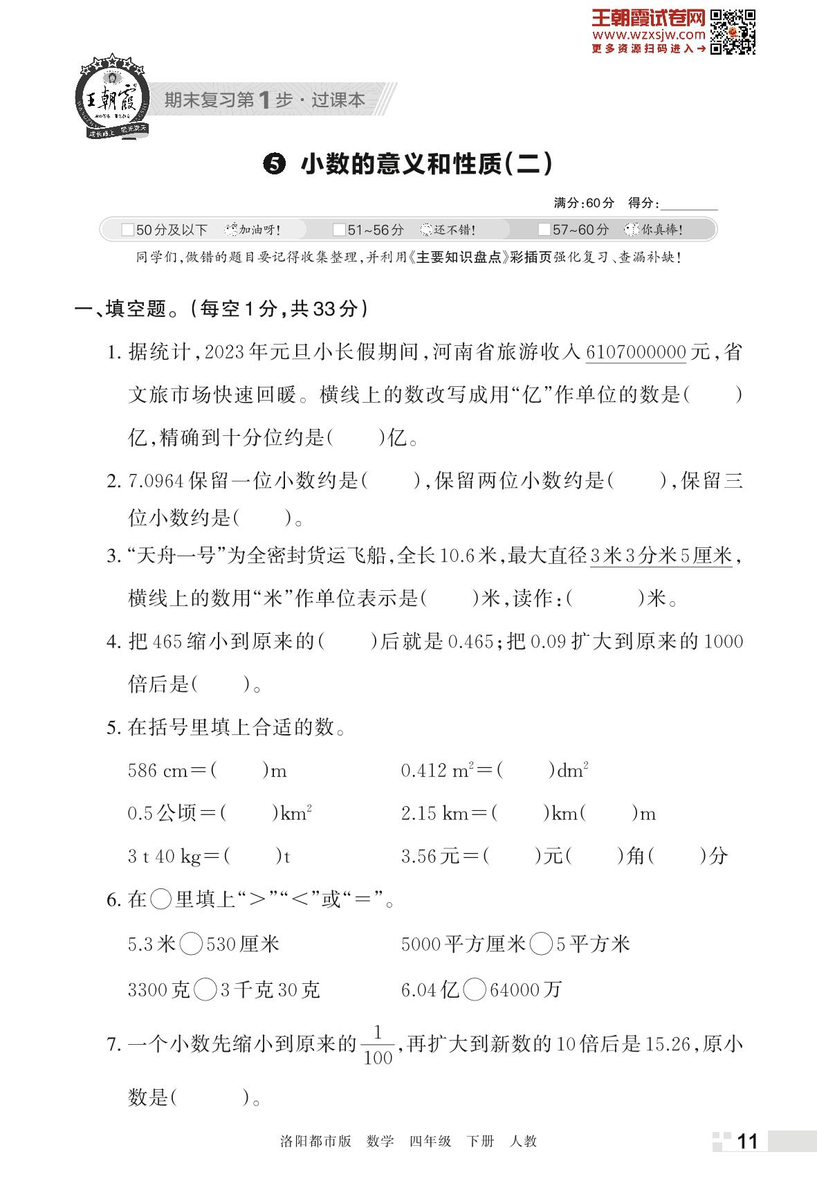 王朝霞期末过课本——5 小数的意义和性质(二)四年级下册数学(人教版)_R230425162928181