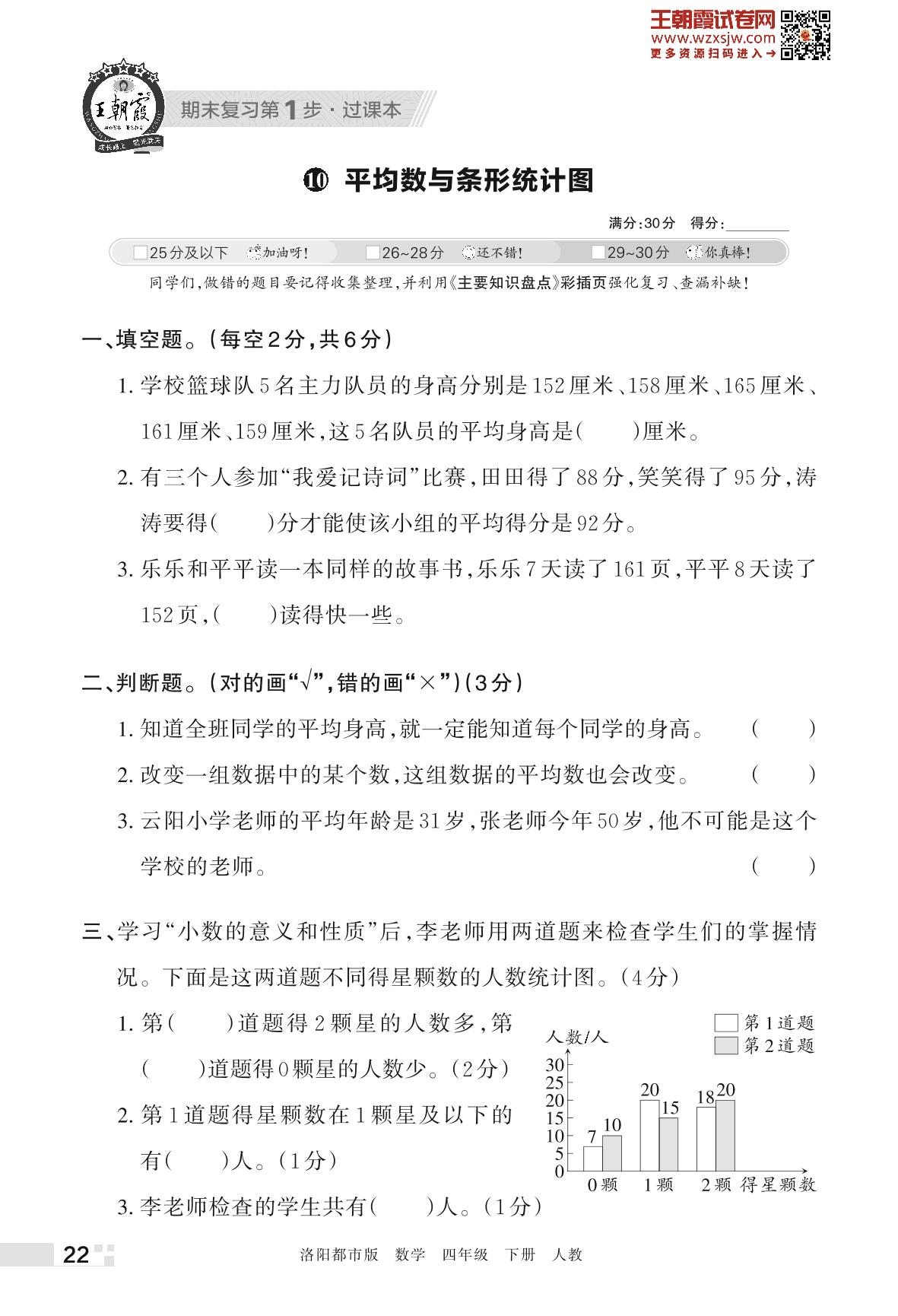 王朝霞期末过课本——10 平均数与条形统计图四年级下册数学(人教版)_R230425162928368