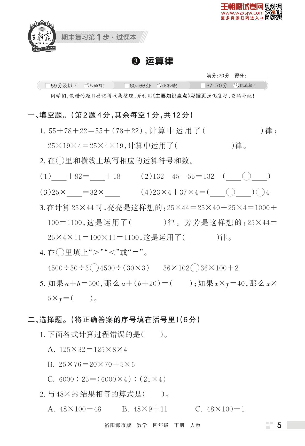 王朝霞期末过课本——3 运算律四年级下册数学(人教版)_R230425162928374