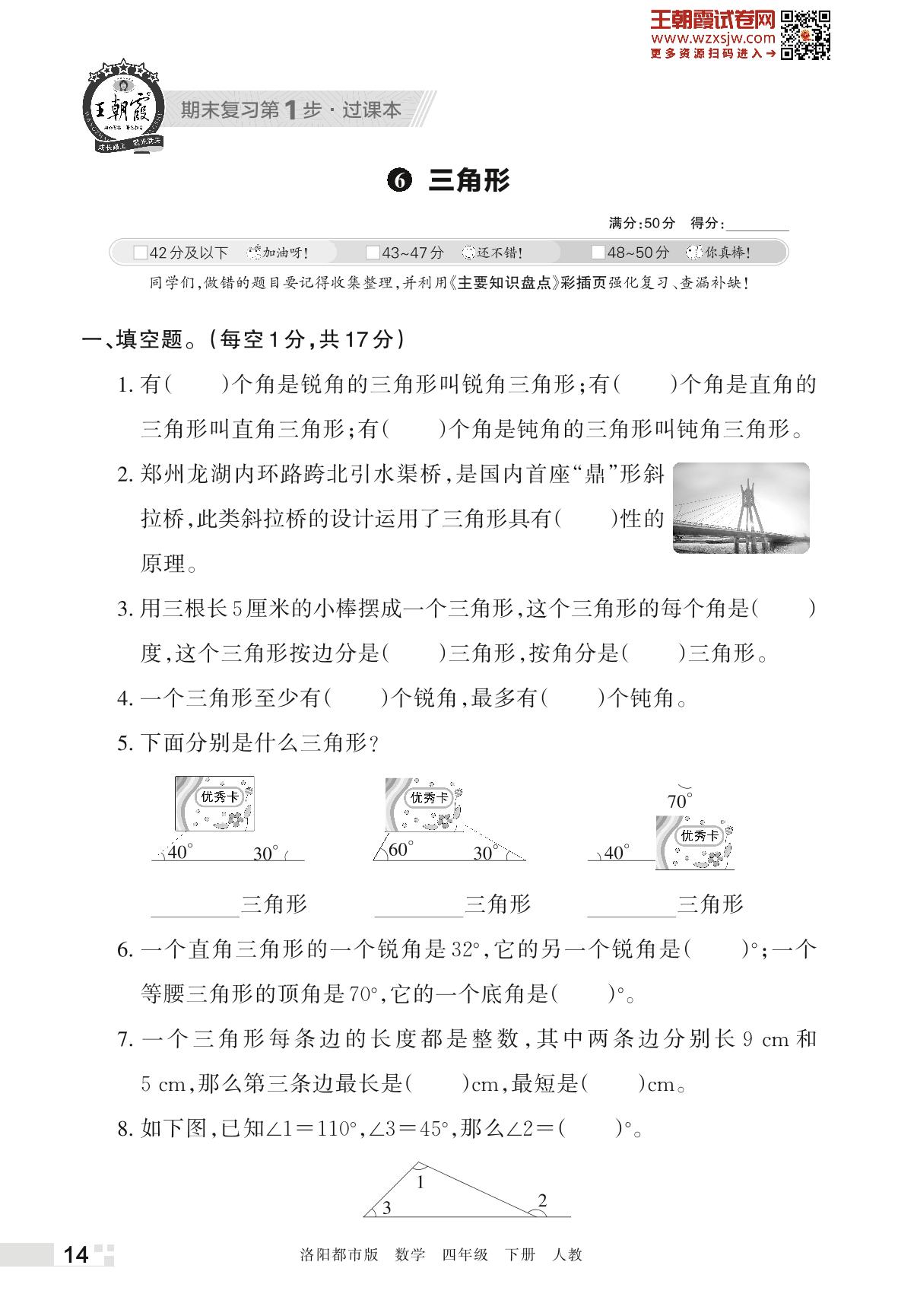 王朝霞期末过课本——6 三角形四年级下册数学(人教版)_R230425162928191