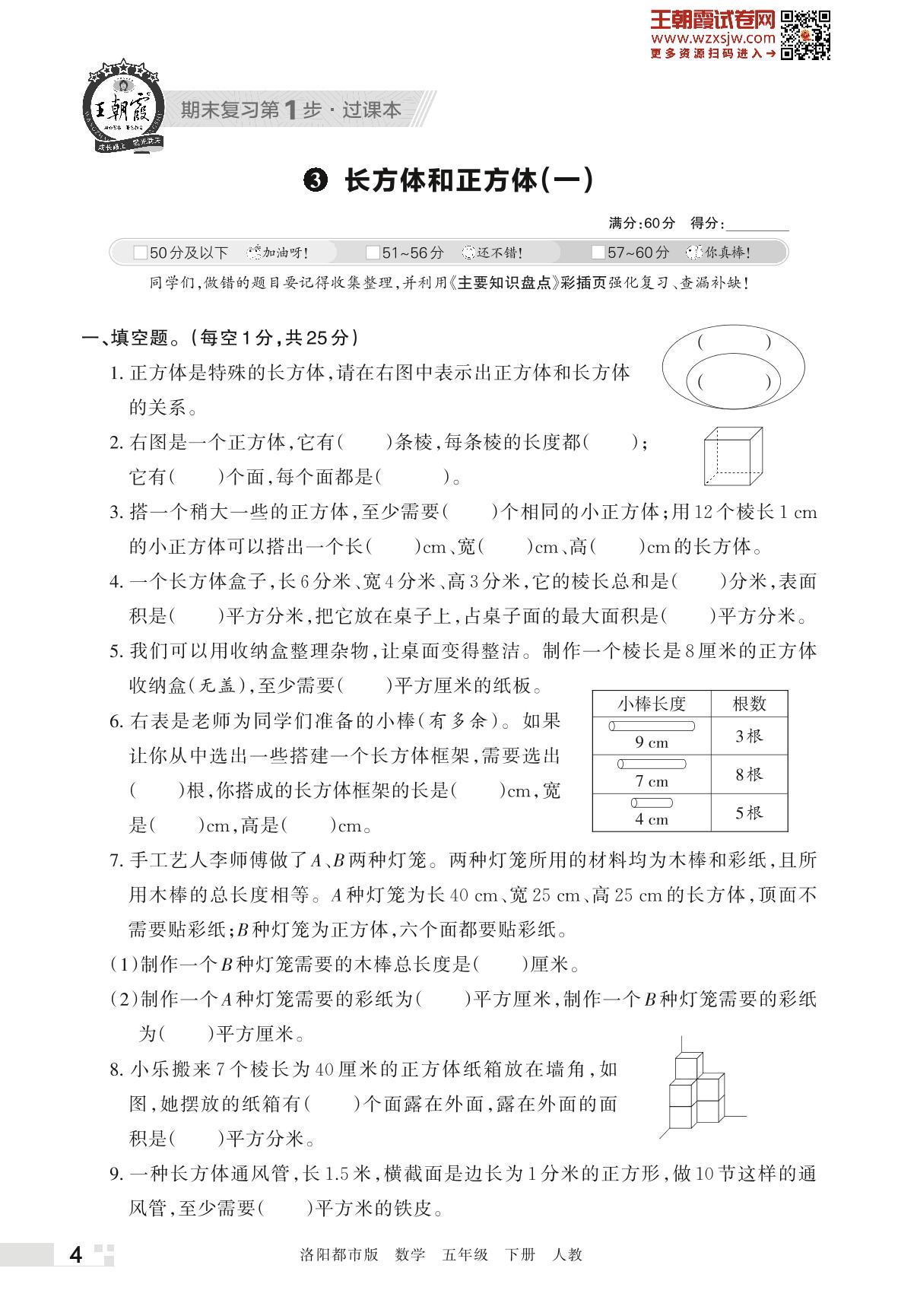 王朝霞期末过课本——3 长方体和正方体(一)五年级下册数学(人教版)_R230425163516740