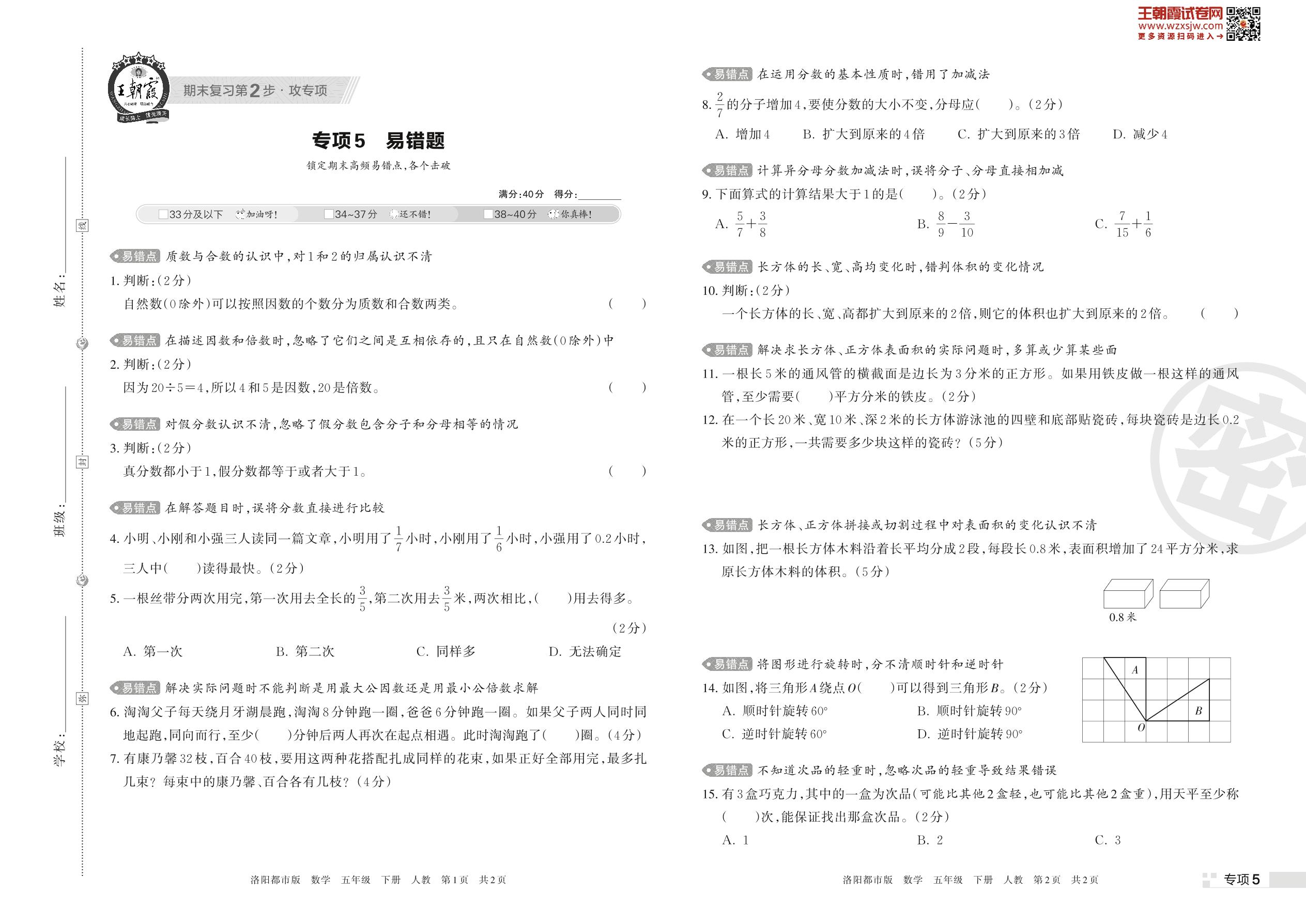 王朝霞期末专项卷——易错题五年级下册数学(人教版)_R230425163516328【5】