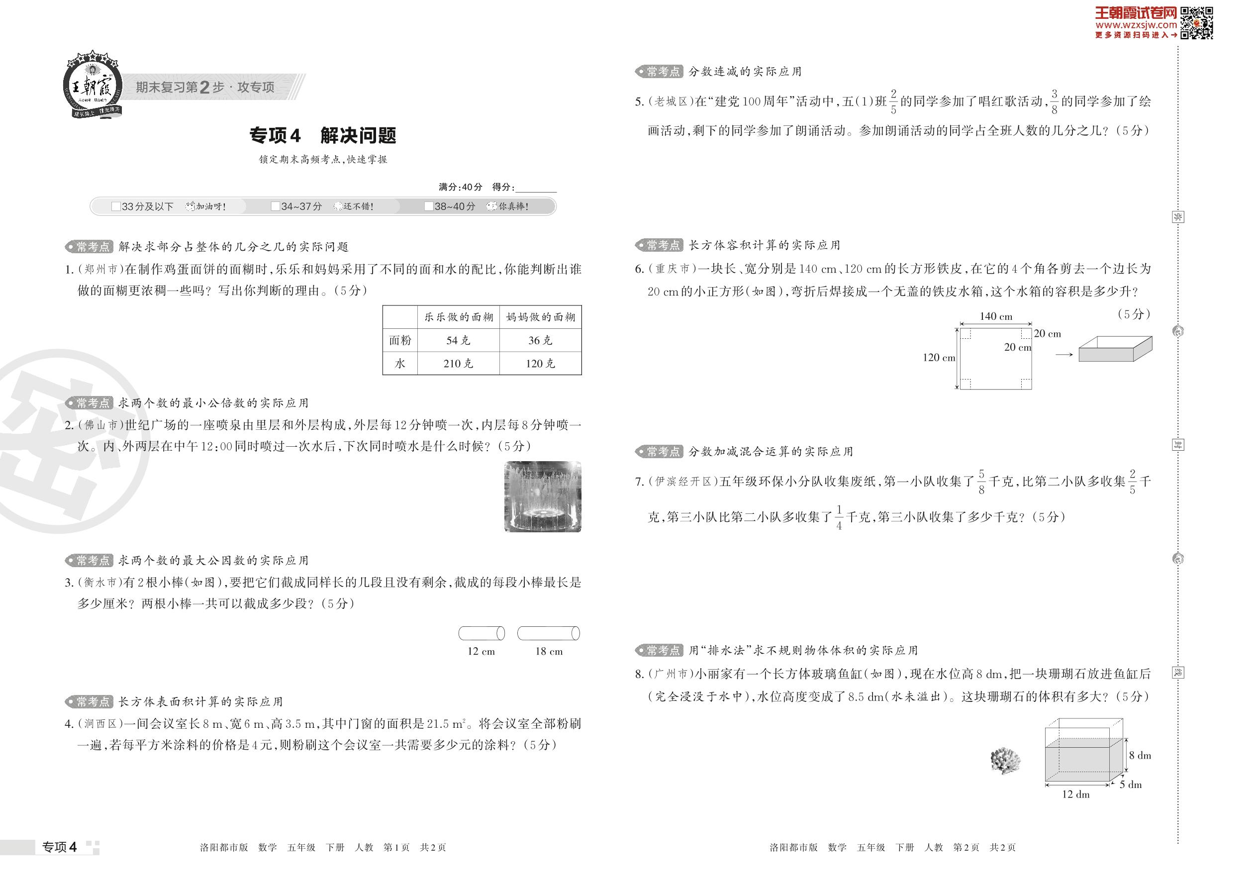 王朝霞期末专项卷——解决问题五年级下册数学(人教版)_R230425163516375【4】