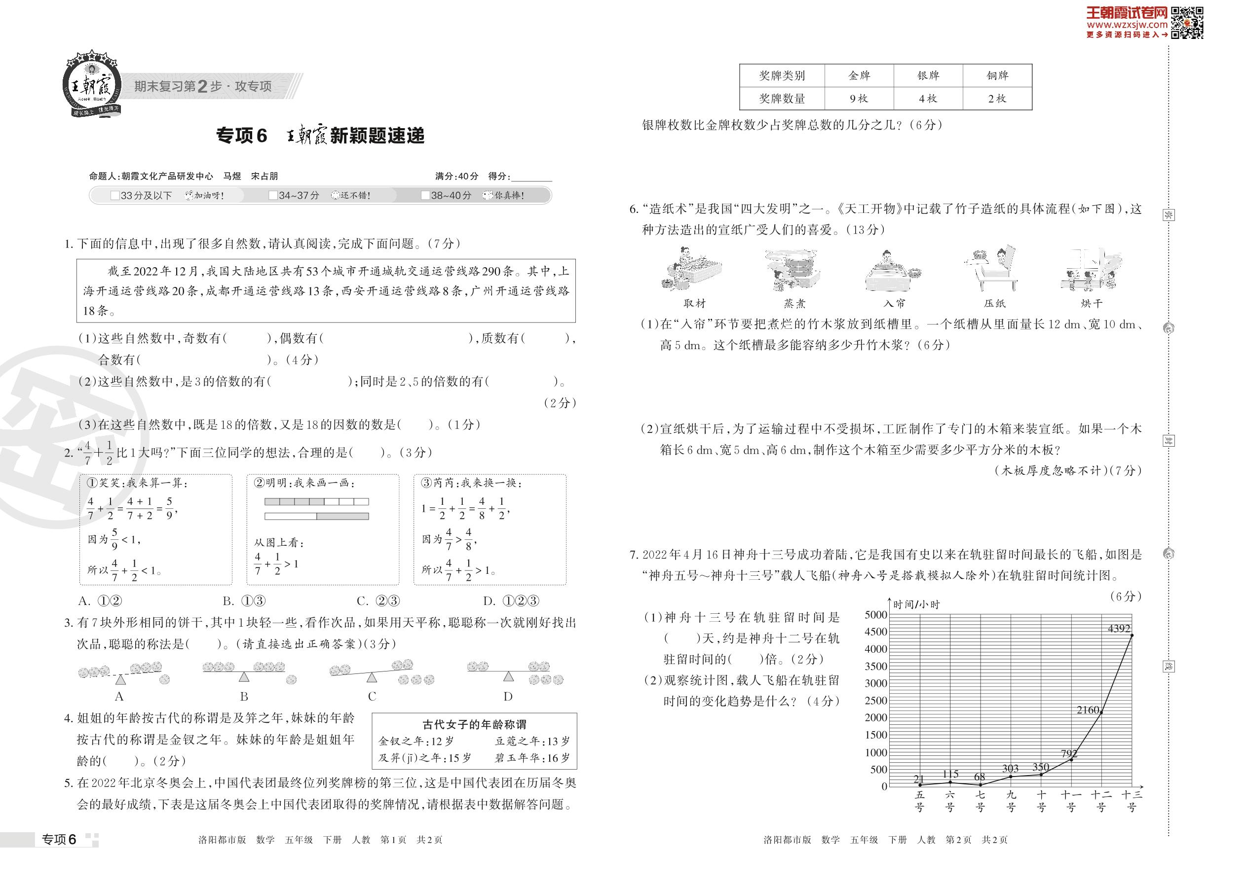 王朝霞期末专项卷——王朝霞新颖题速递五年级下册数学(人教版)_R230425163517673【6】