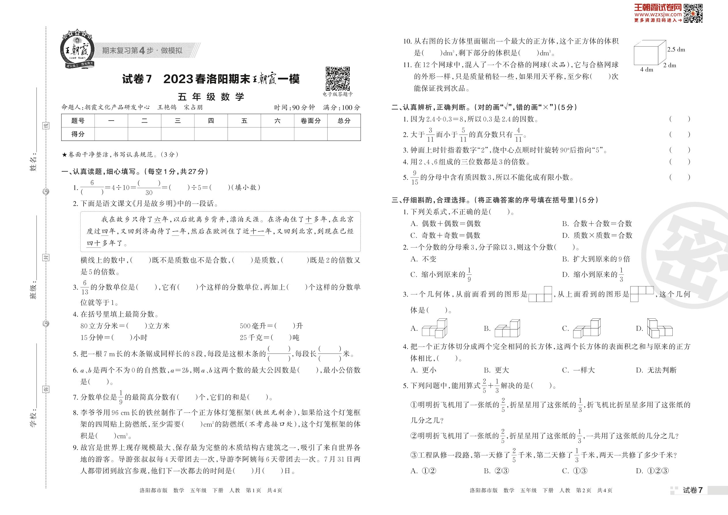 王朝霞期末模拟卷五年级下册数学(人教版)_R230425163518205【7】