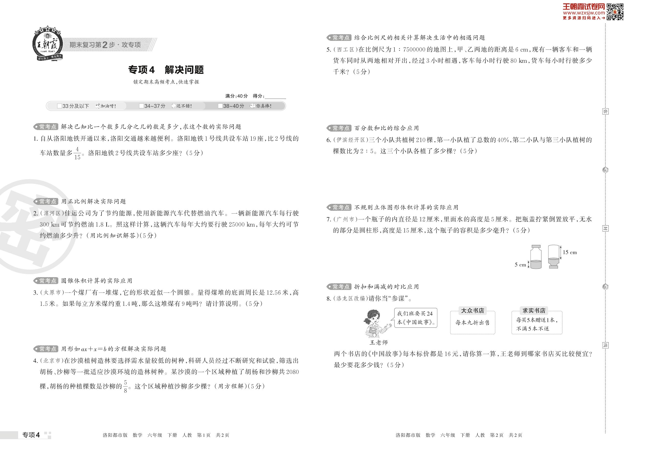 王朝霞期末专项卷——解决问题六年级下册数学(人教版)_R230425164017297【4】