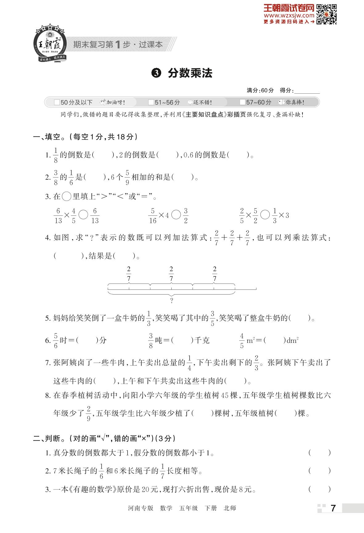 王朝霞期末过课本——3 分数乘法五年级下册数学(北师版)_R230425164108124