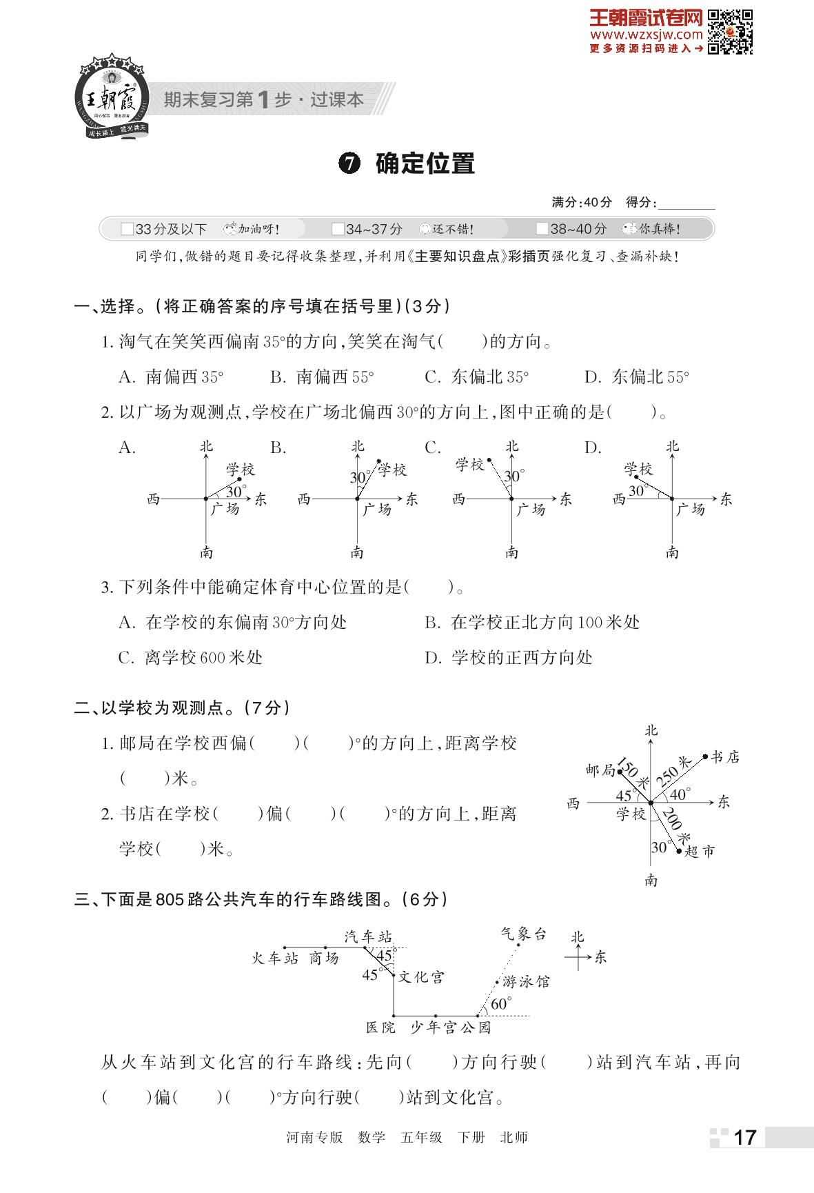 王朝霞期末过课本——7 确定位置五年级下册数学(北师版)_R230425164109734