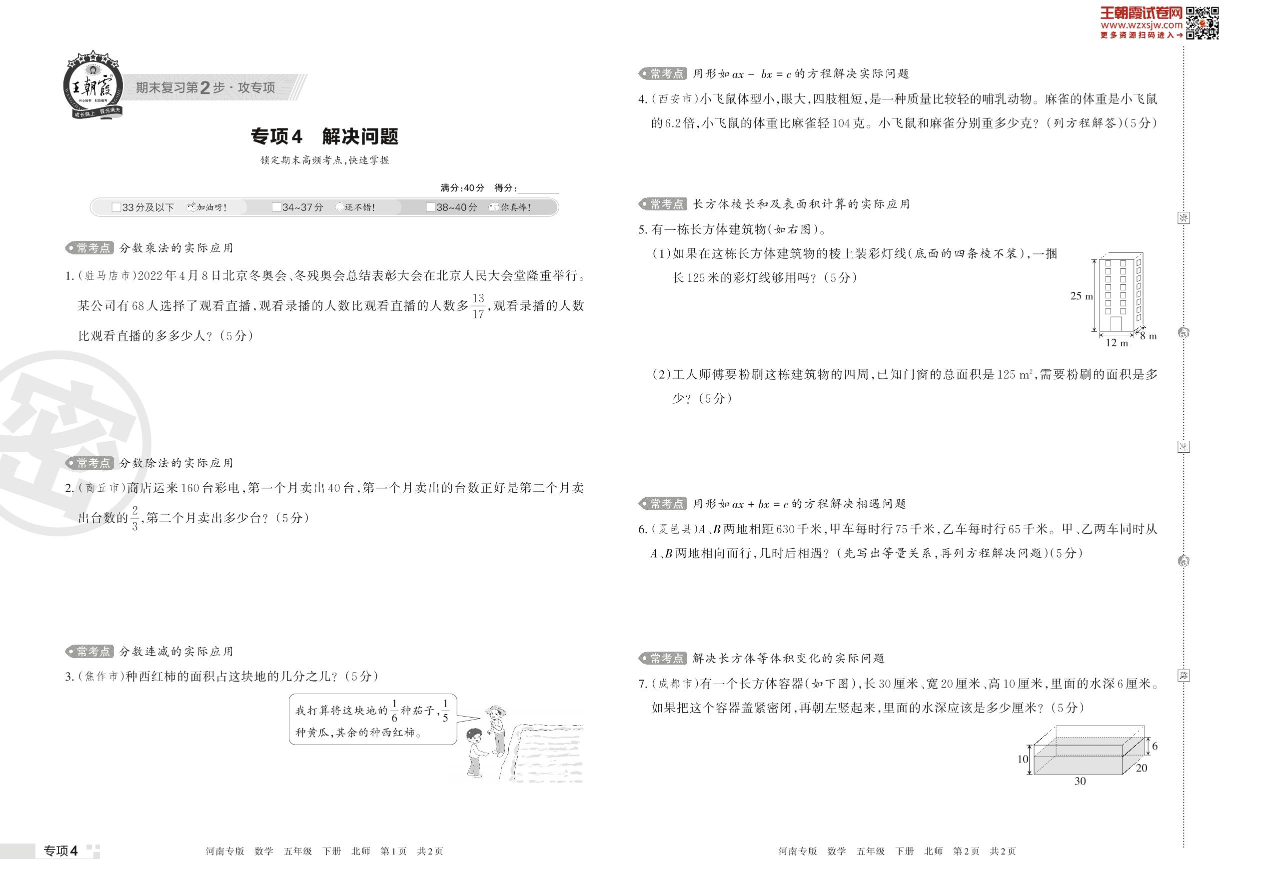 王朝霞期末专项卷——解决问题五年级下册数学(北师版)_R230425164110278【4】