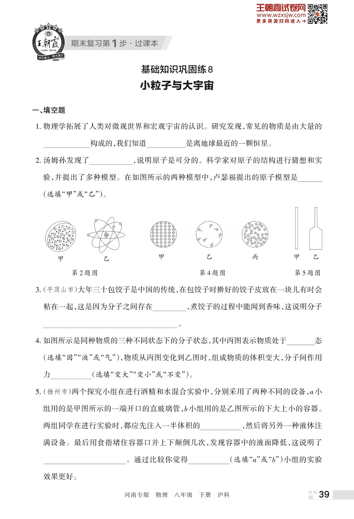 王朝霞期末过课本——基础知识巩固练8 小粒子与大宇宙八年级下册物理(沪科版)_R230425165759805