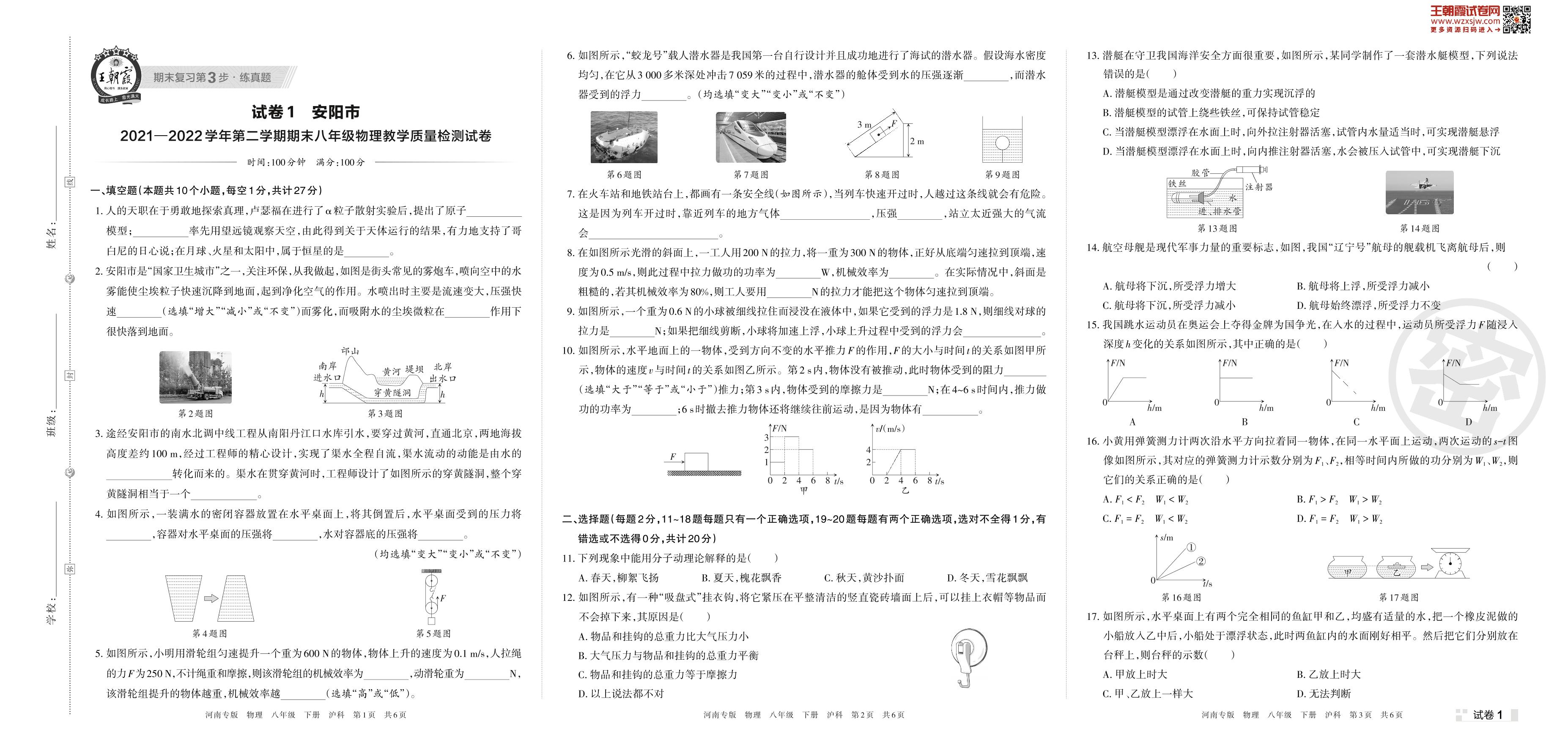 安阳市2021—2022学年第二学期期末八年级物理教学质量检测试卷(沪科版)【1】