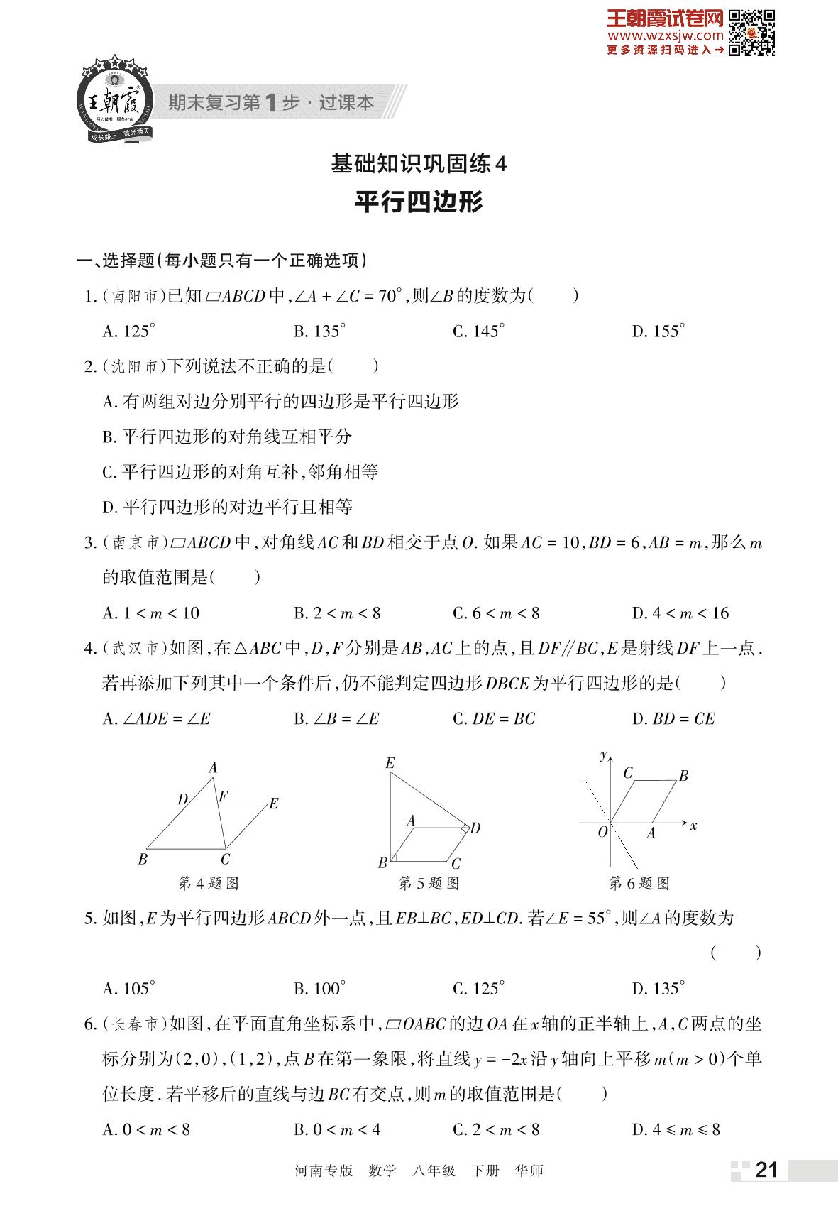 王朝霞期末过课本——基础知识巩固练4 平行四边形八年级下册数学(华师版)_R230425171001573