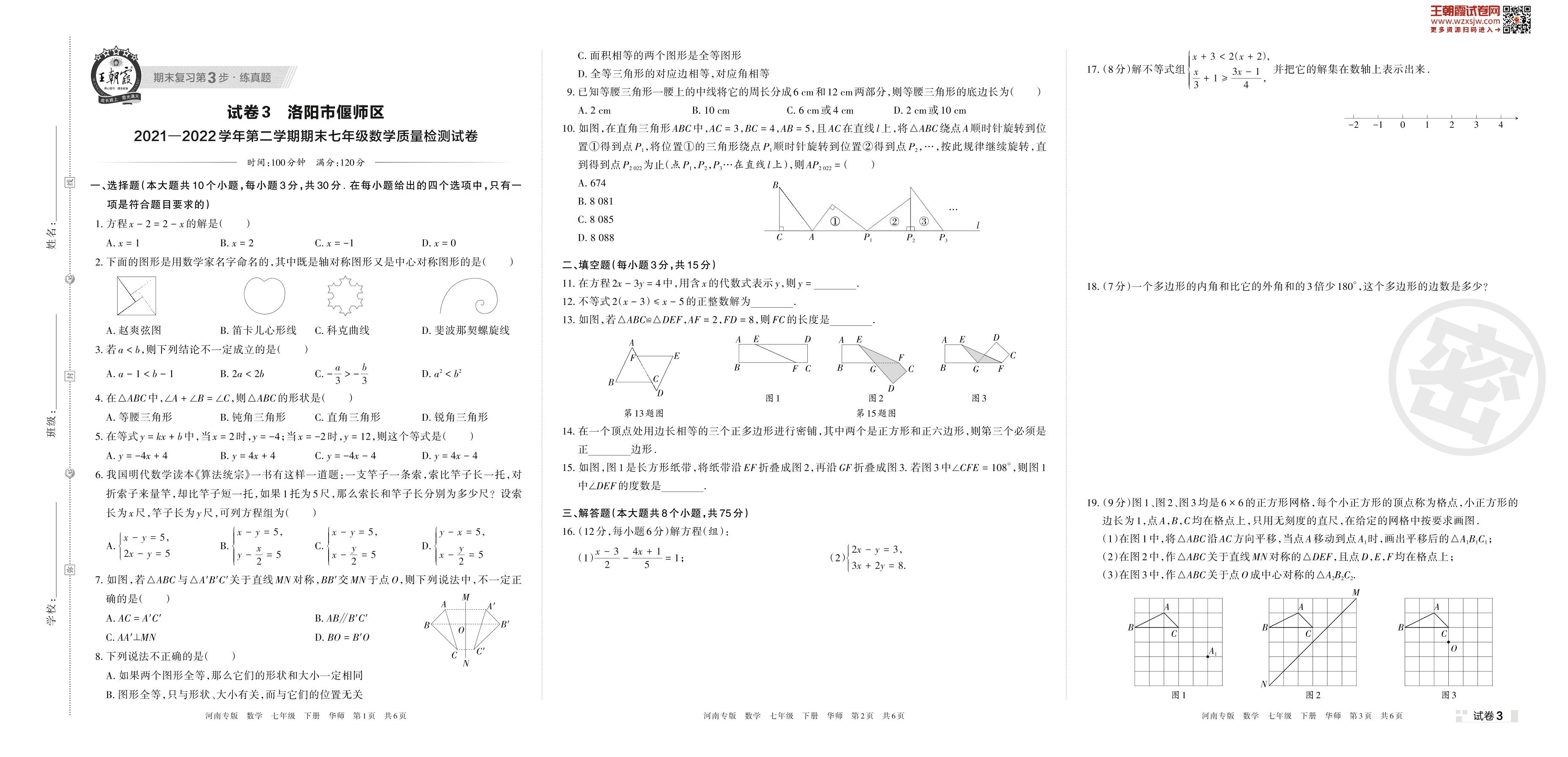 洛阳市偃师区2021—2022学年第二学期期末七年级数学质量检测试卷(华师版)【3】