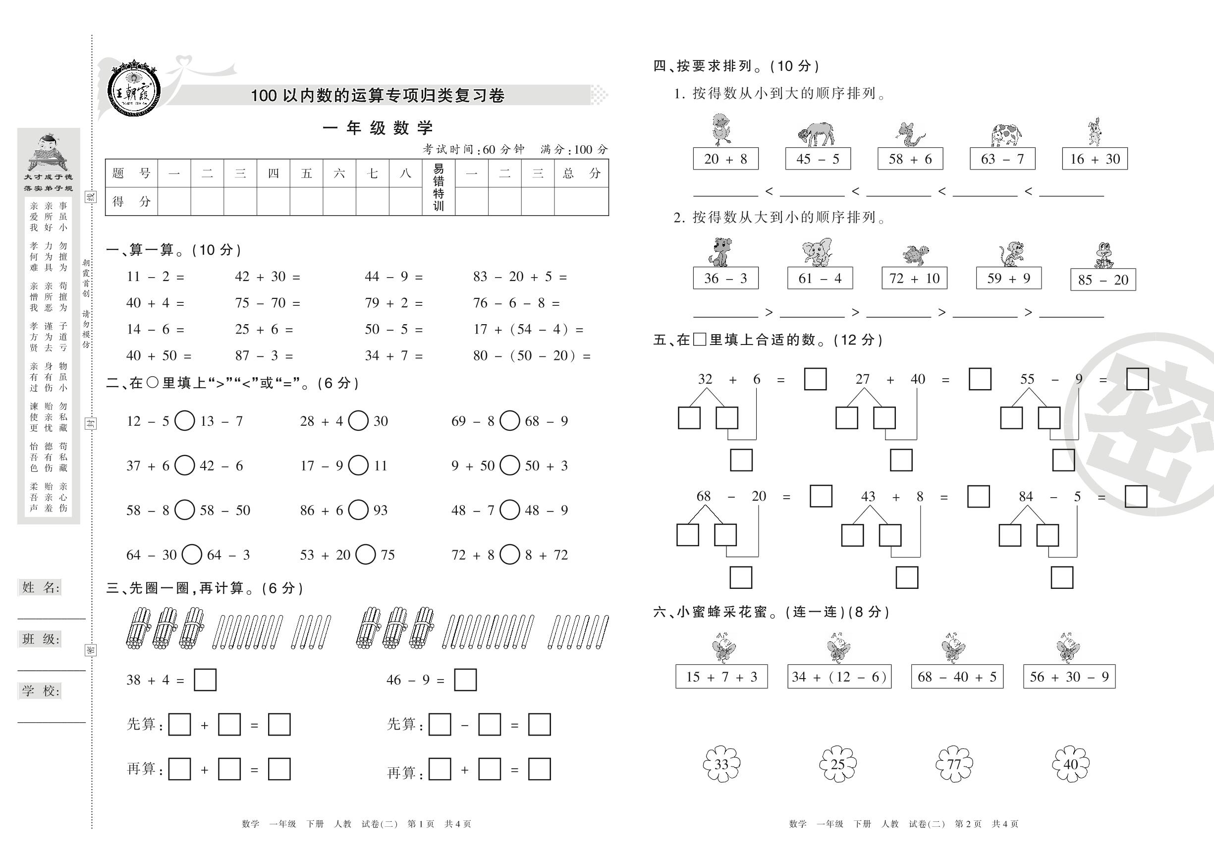 王朝霞期末专项卷一年级下册数学(人教版)_R210802221049【2】