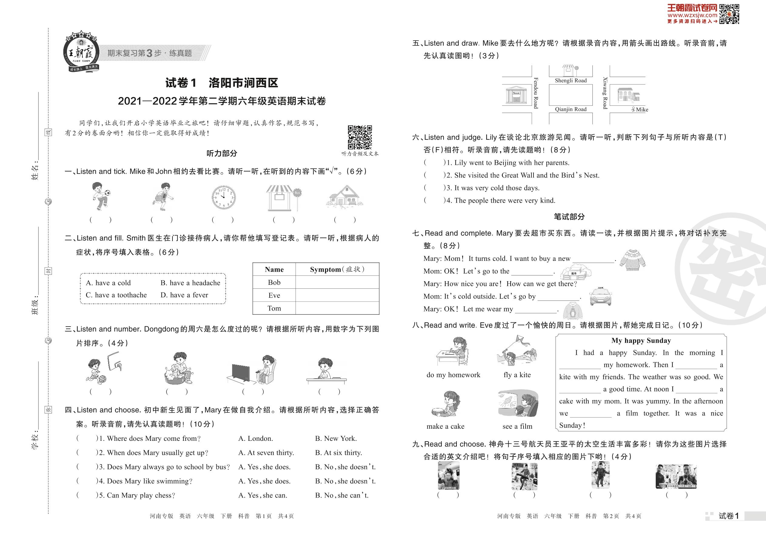 洛阳市涧西区2021—2022学年第二学期六年级英语期末试卷(科普版)【1】