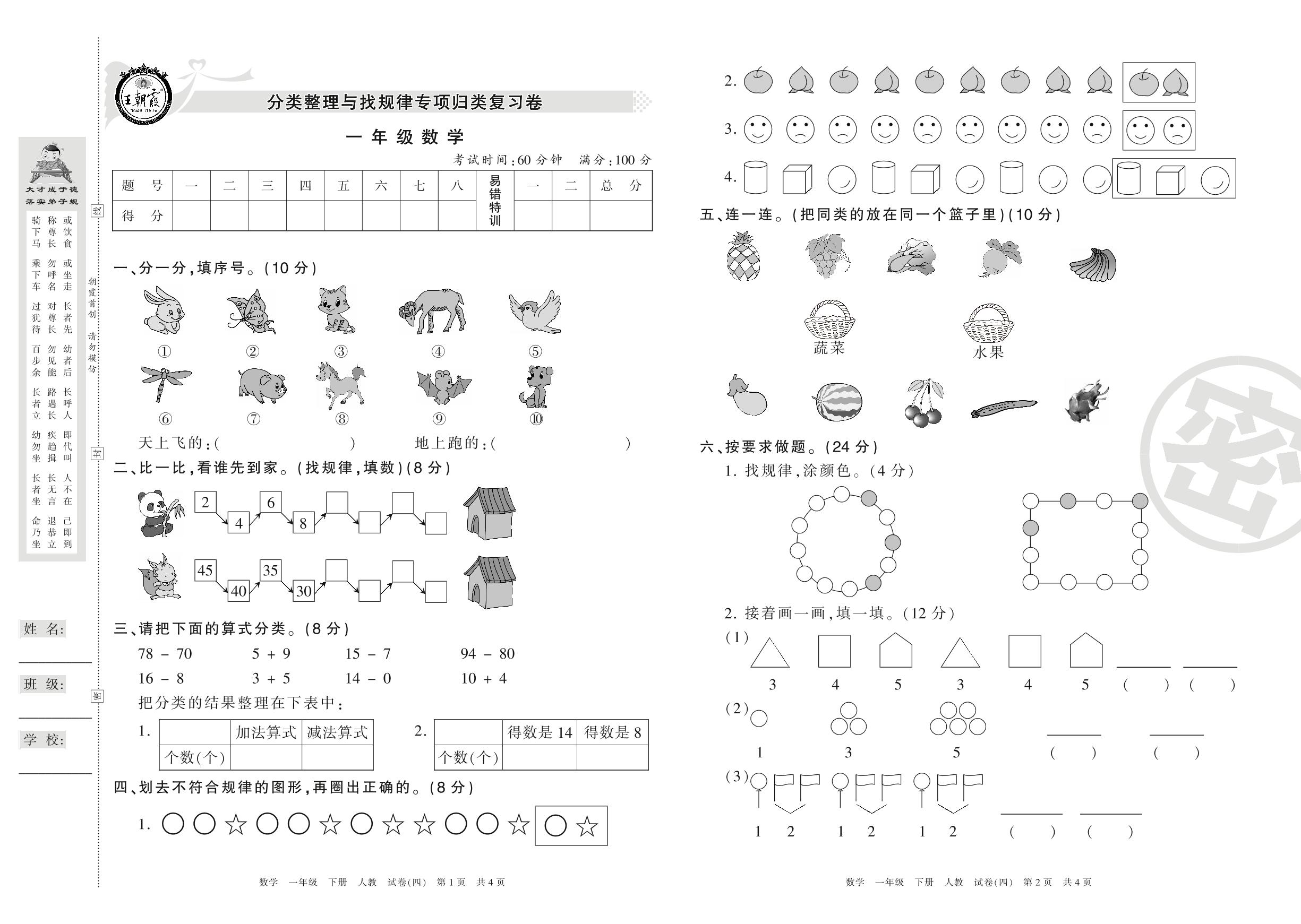 一年级数学人教版下册专项卷