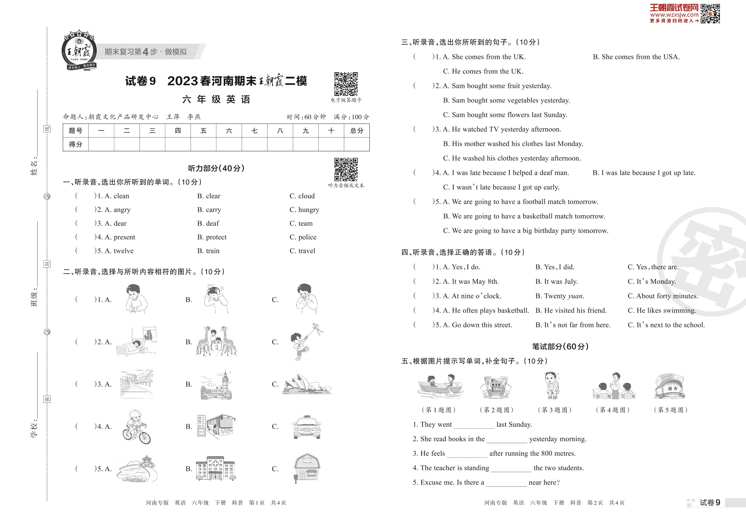 王朝霞期末模拟卷六年级下册英语(科普版)_R230425173405484【9】