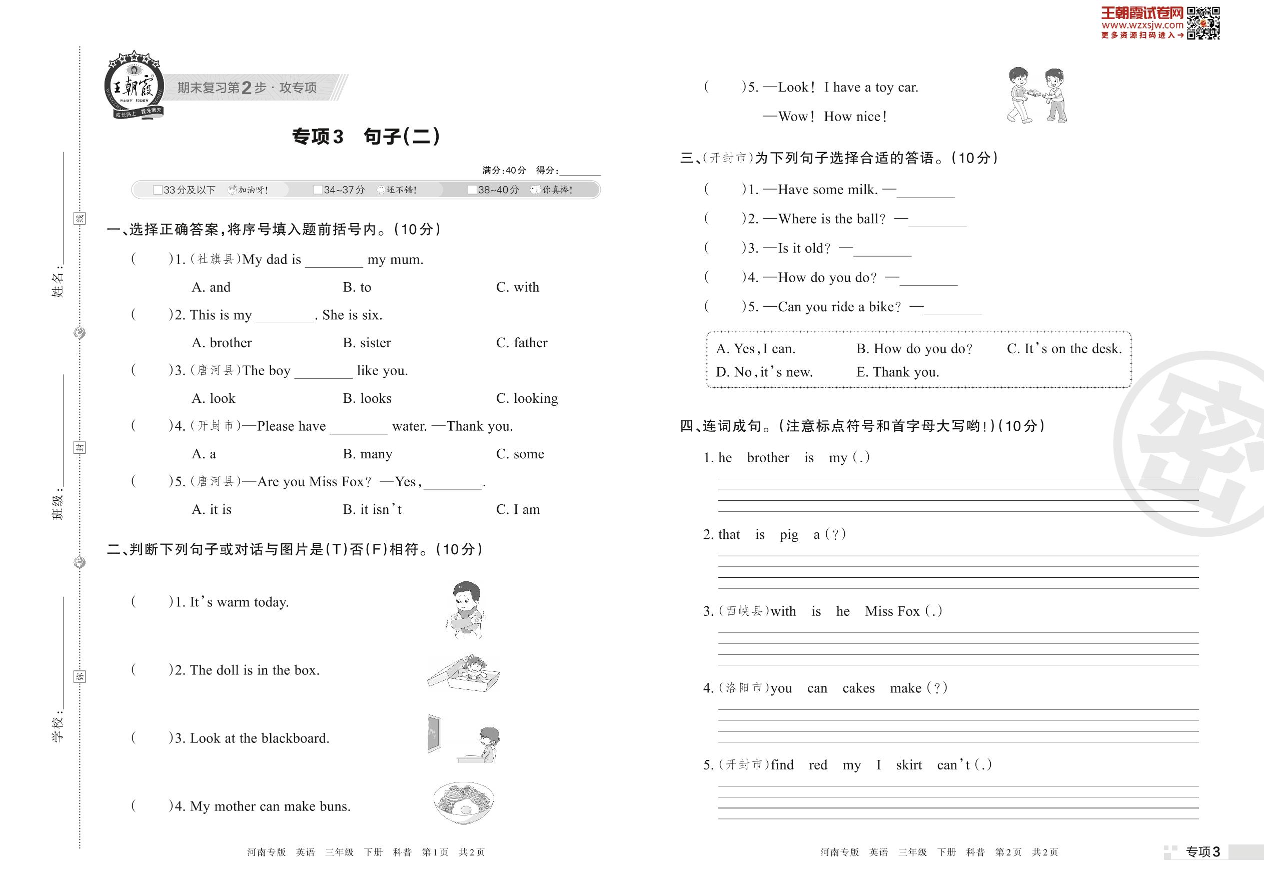 王朝霞期末专项卷——句子(二)三年级下册英语(科普版)_R230426092846833【3】