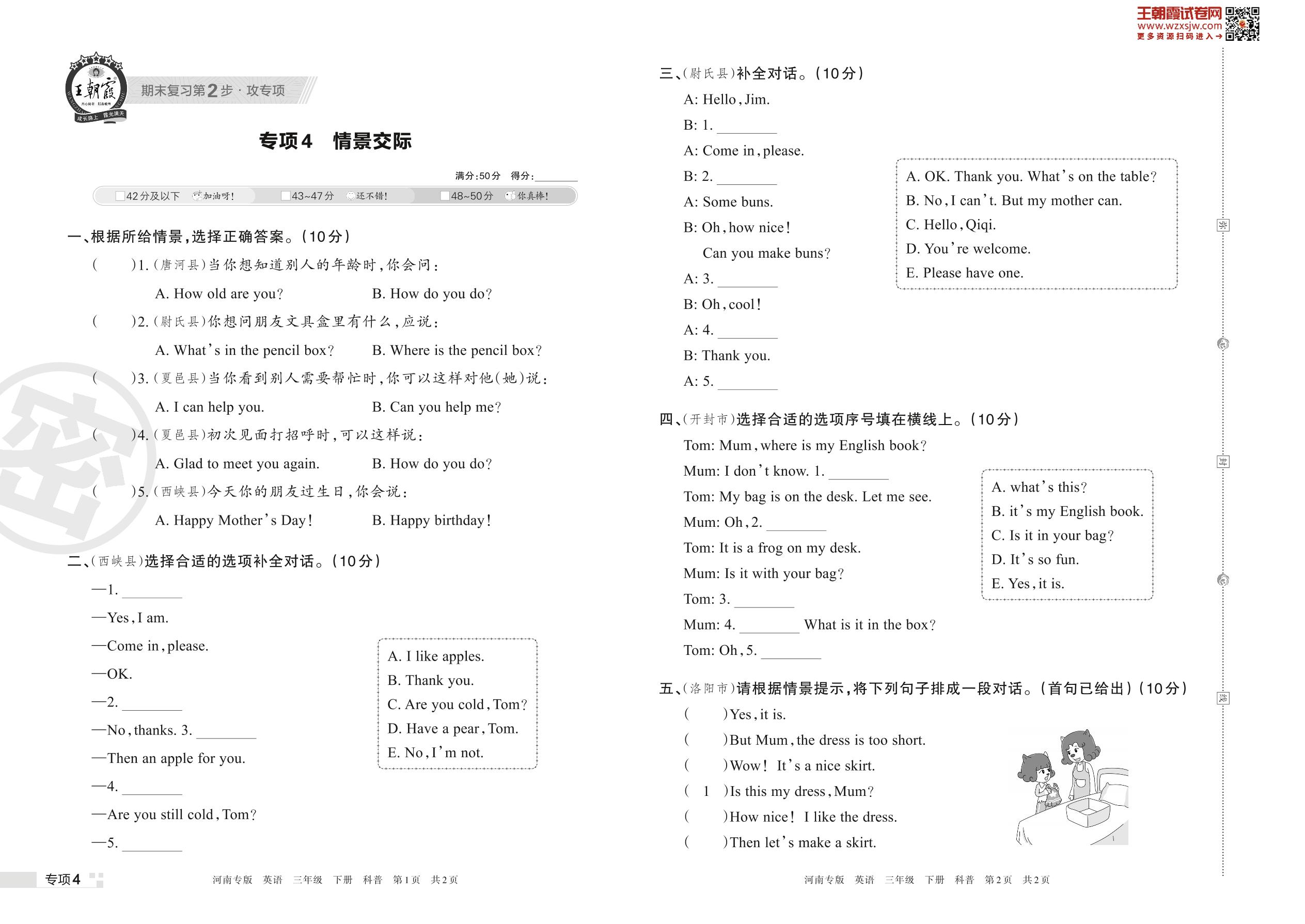 王朝霞期末专项卷——情景交际三年级下册英语(科普版)_R230426092846973【4】