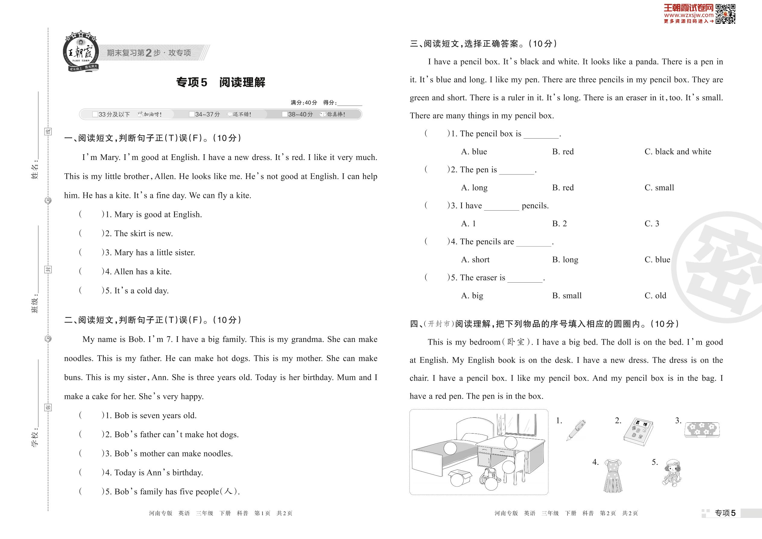 王朝霞期末专项卷——阅读理解三年级下册英语(科普版)_R230426092846164【5】