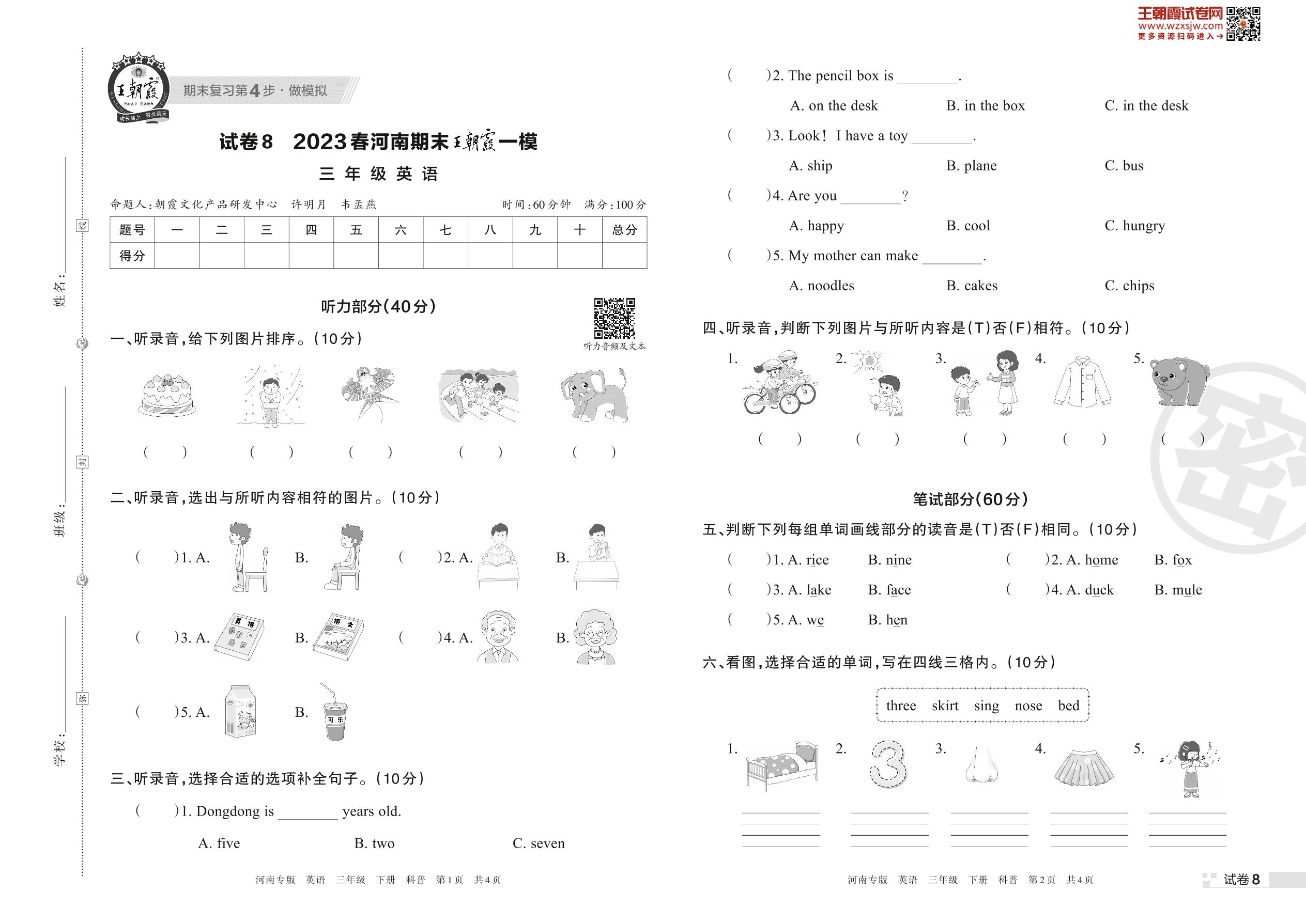 王朝霞期末模拟卷三年级下册英语(科普版)_R230426092848178【8】