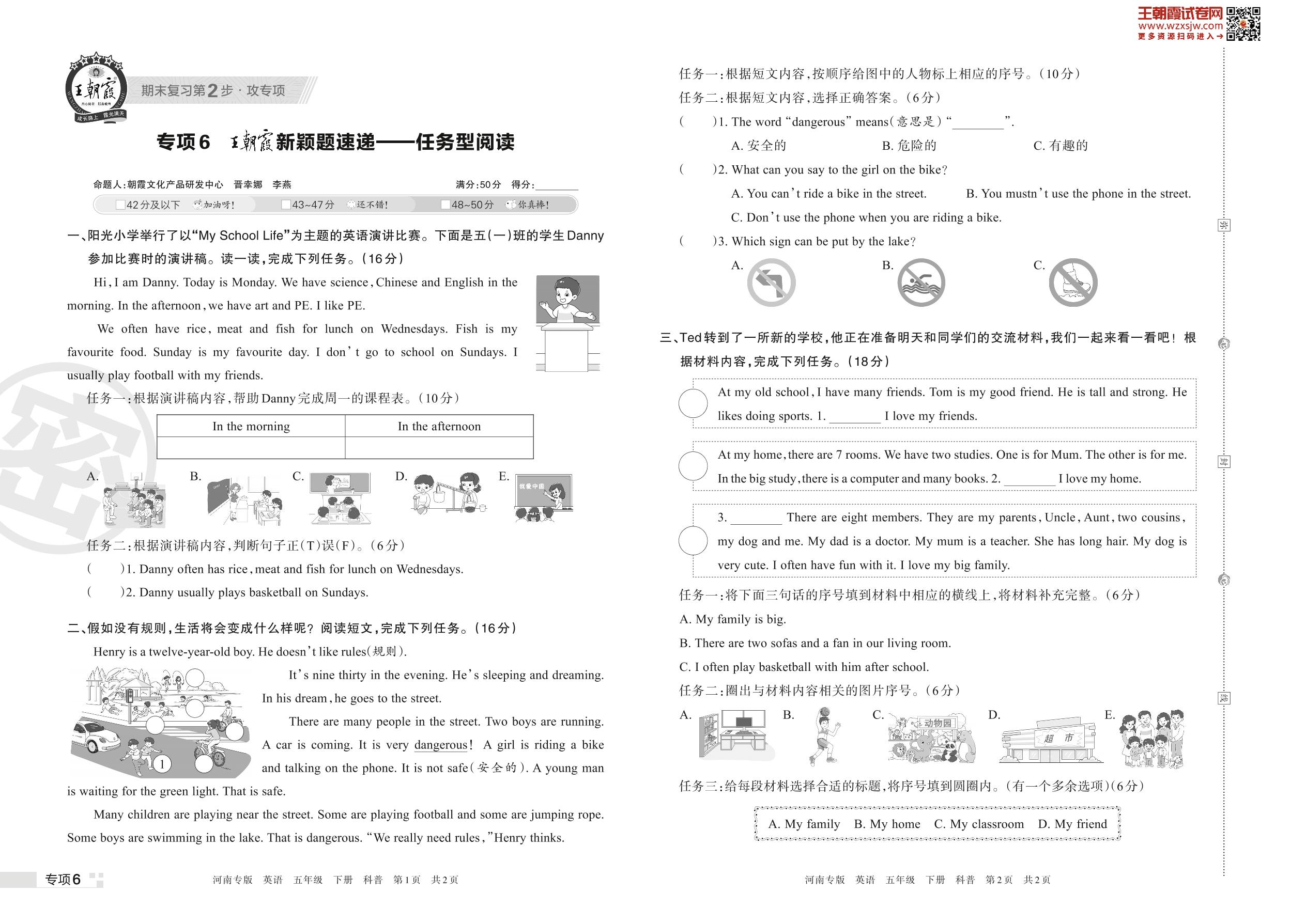 王朝霞期末专项卷——新颖题速递:任务型阅读五年级下册英语(科普版)_R230426094314923【6】