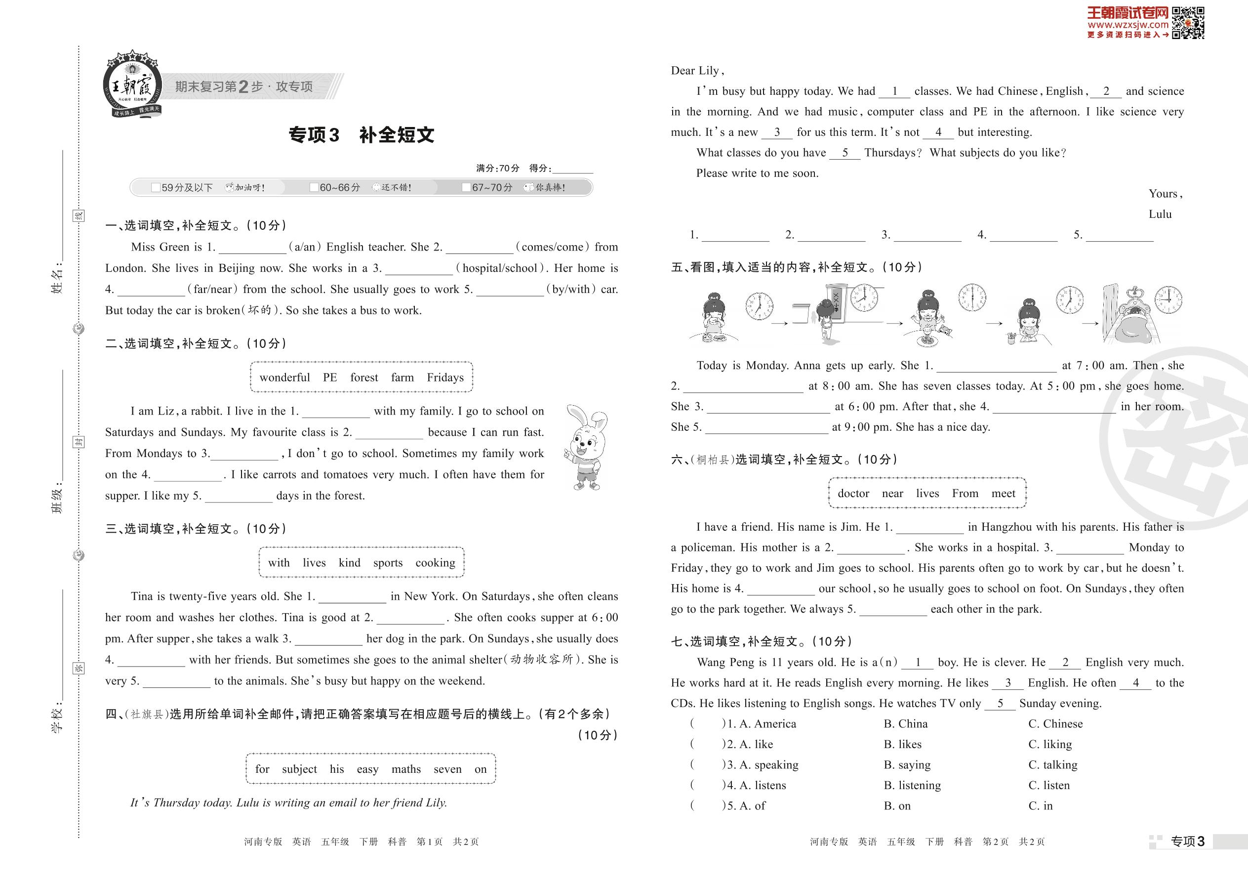 王朝霞期末专项卷——补全短文五年级下册英语(科普版)_R230426094314333【3】