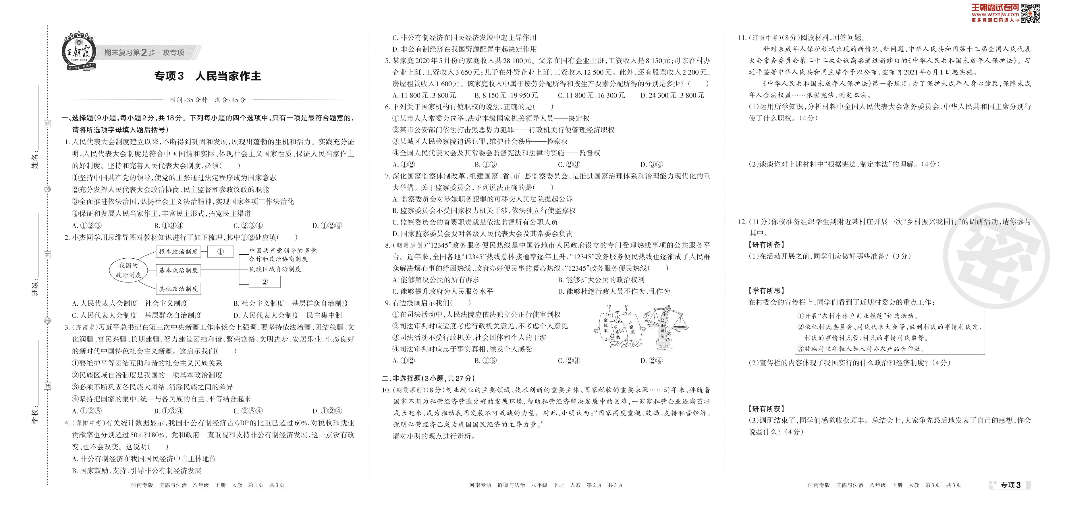 王朝霞期末专项卷——人民当家作主八年级下册道德与法治(人教版)_R230426094936668【3】