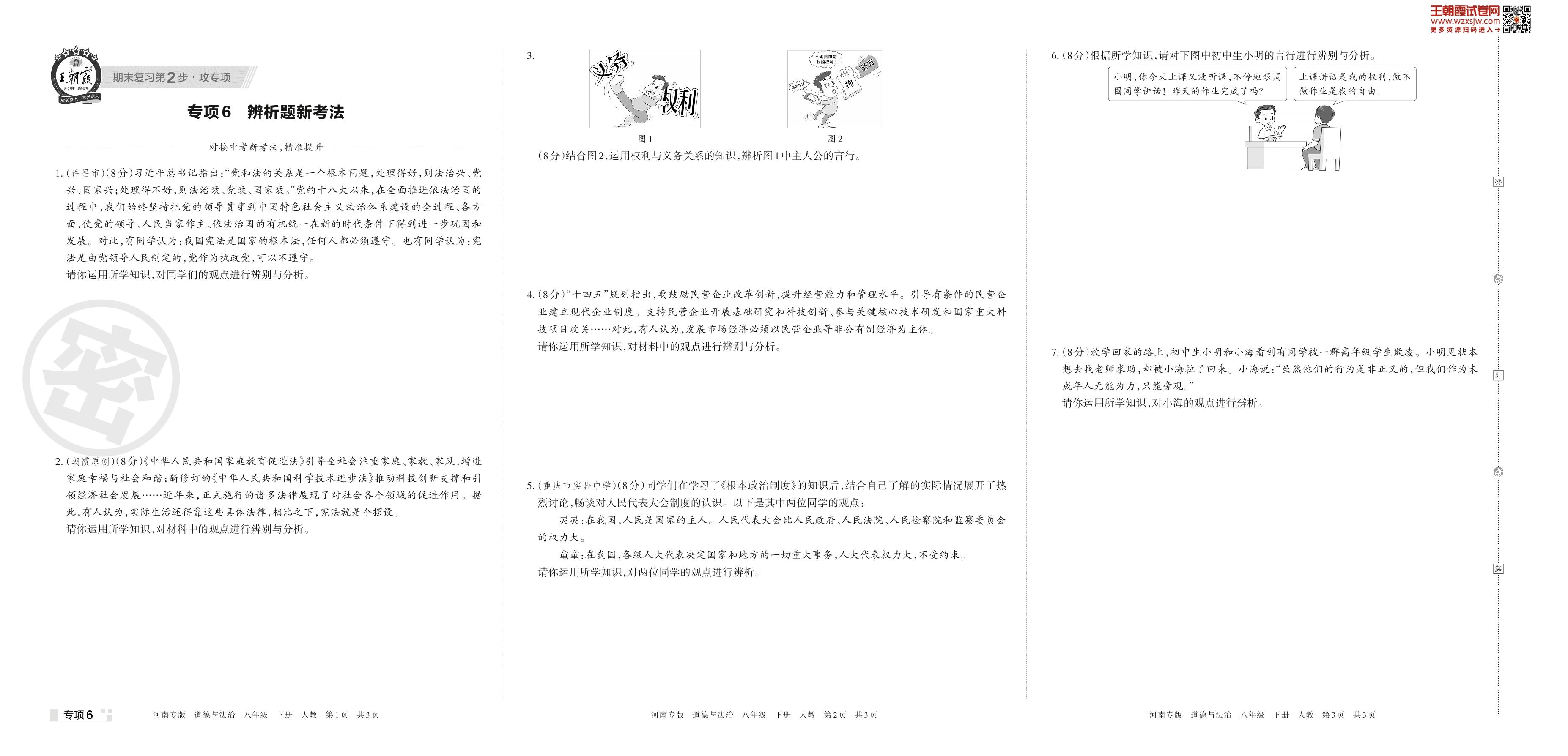 王朝霞期末专项卷——辨析题新考法八年级下册道德与法治(人教版)_R230426094936826【6】