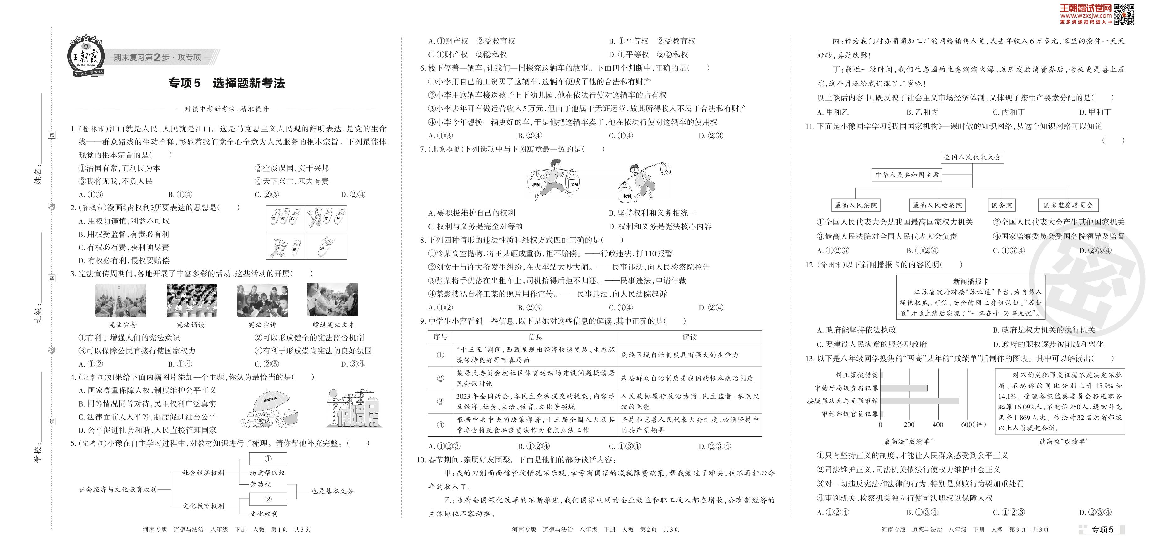 王朝霞期末专项卷——选择题新考法八年级下册道德与法治(人教版)_R230426094937304【5】