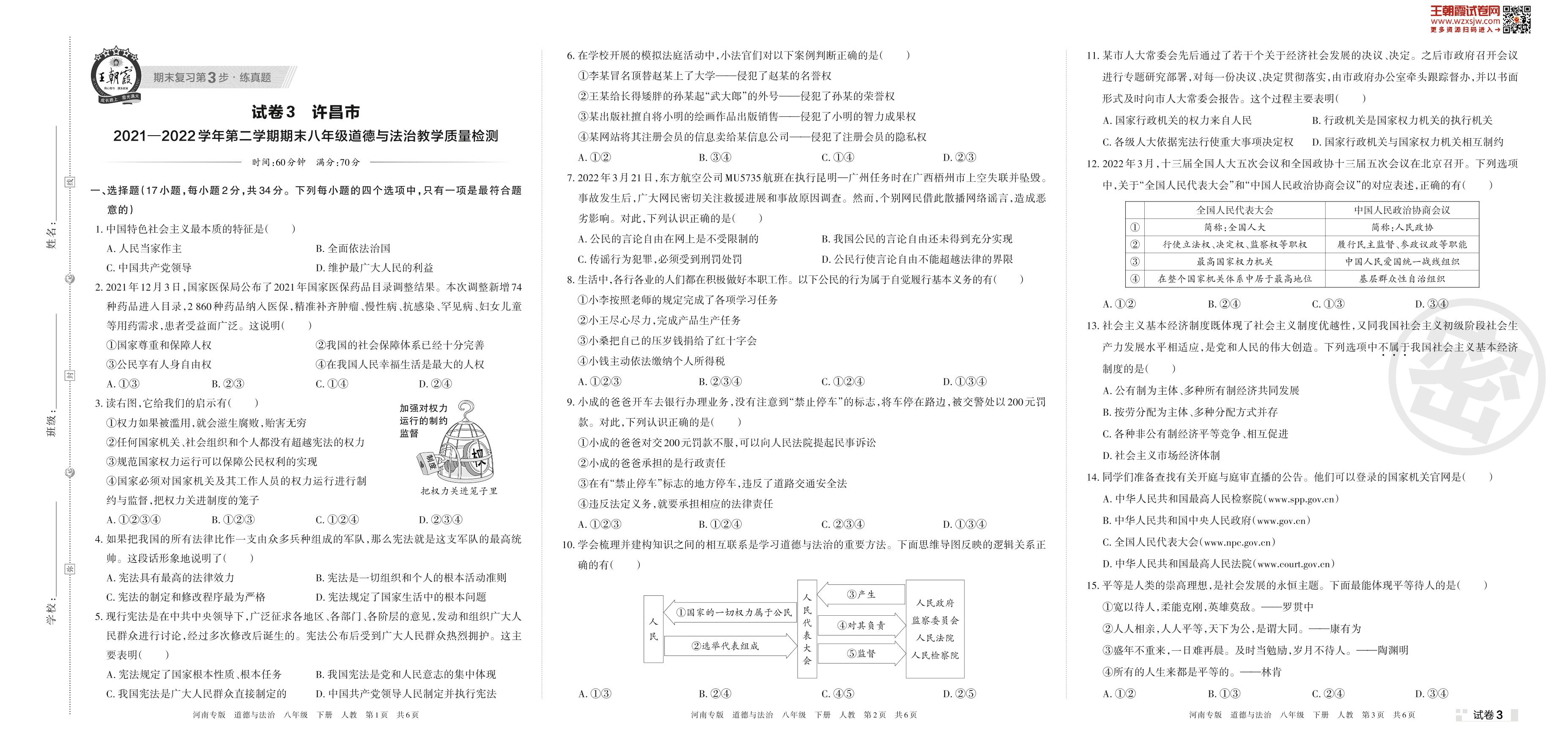许昌市2021—2022学年第二学期期末八年级道德与法治教学质量检测(人教版)【3】