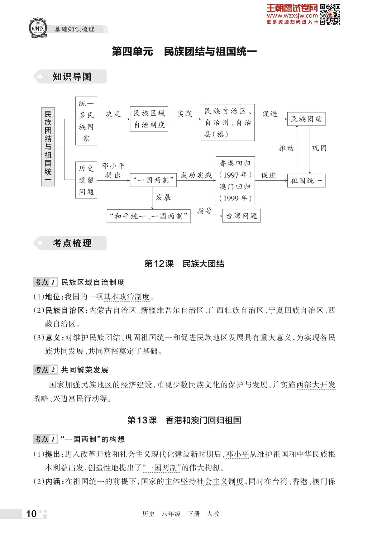 王朝霞期末知识梳理——第四单元 民族团结与祖国统一八年级下册历史(人教版)_R230426095453888