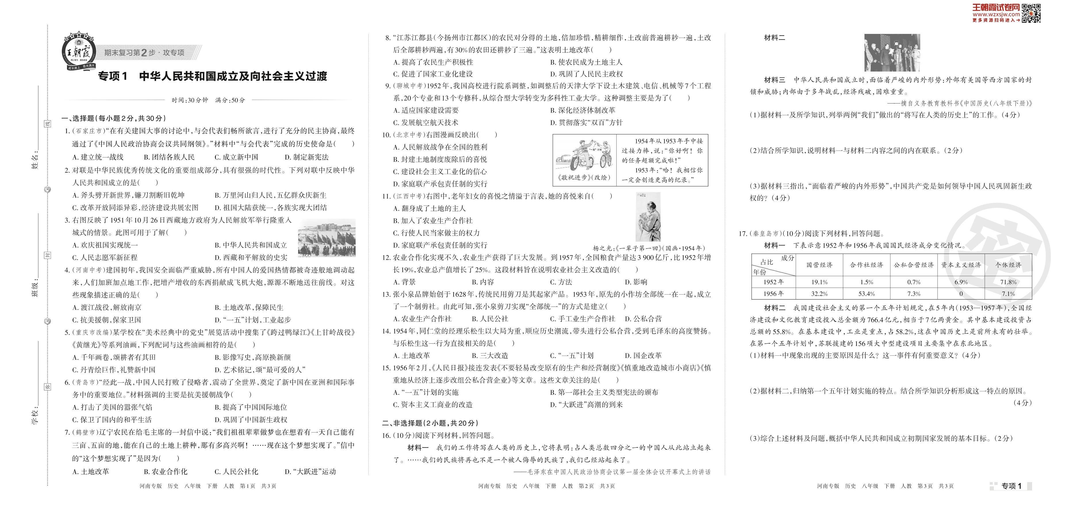 王朝霞期末专项卷——中华人民共和国成立及向社会主义过渡八年级下册历史(人教版)_R230426095454543【1】