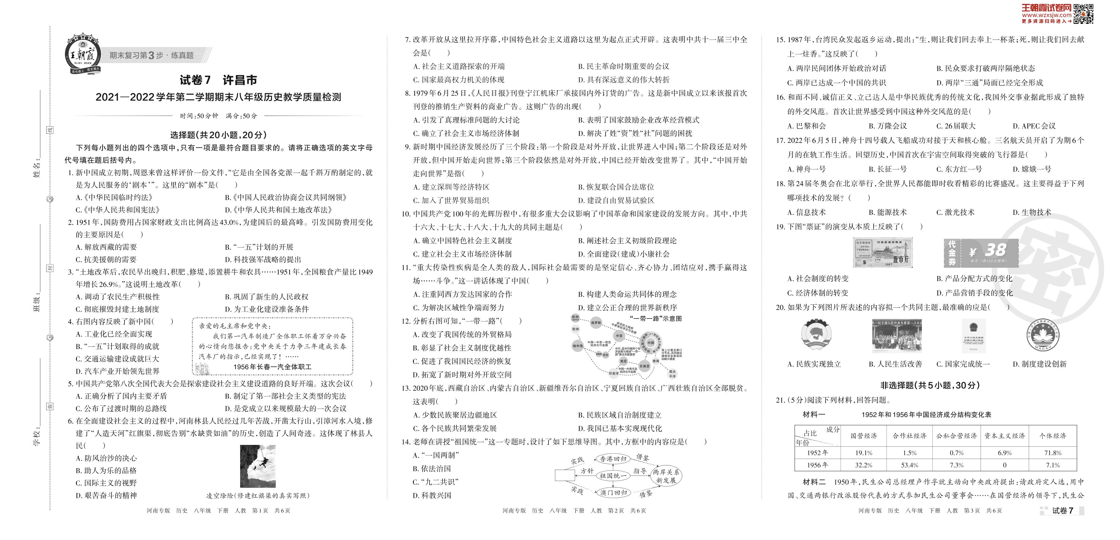 许昌市2021—2022学年第二学期期末八年级历史教学质量检测(人教版)【7】