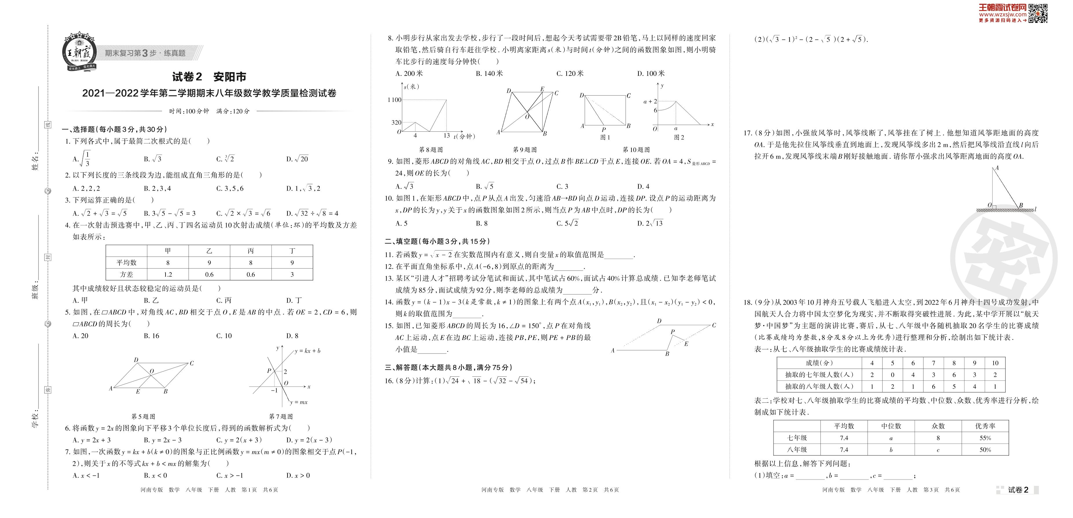 安阳市2021—2022学年第二学期期末八年级数学教学质量检测试卷(人教版)【2】