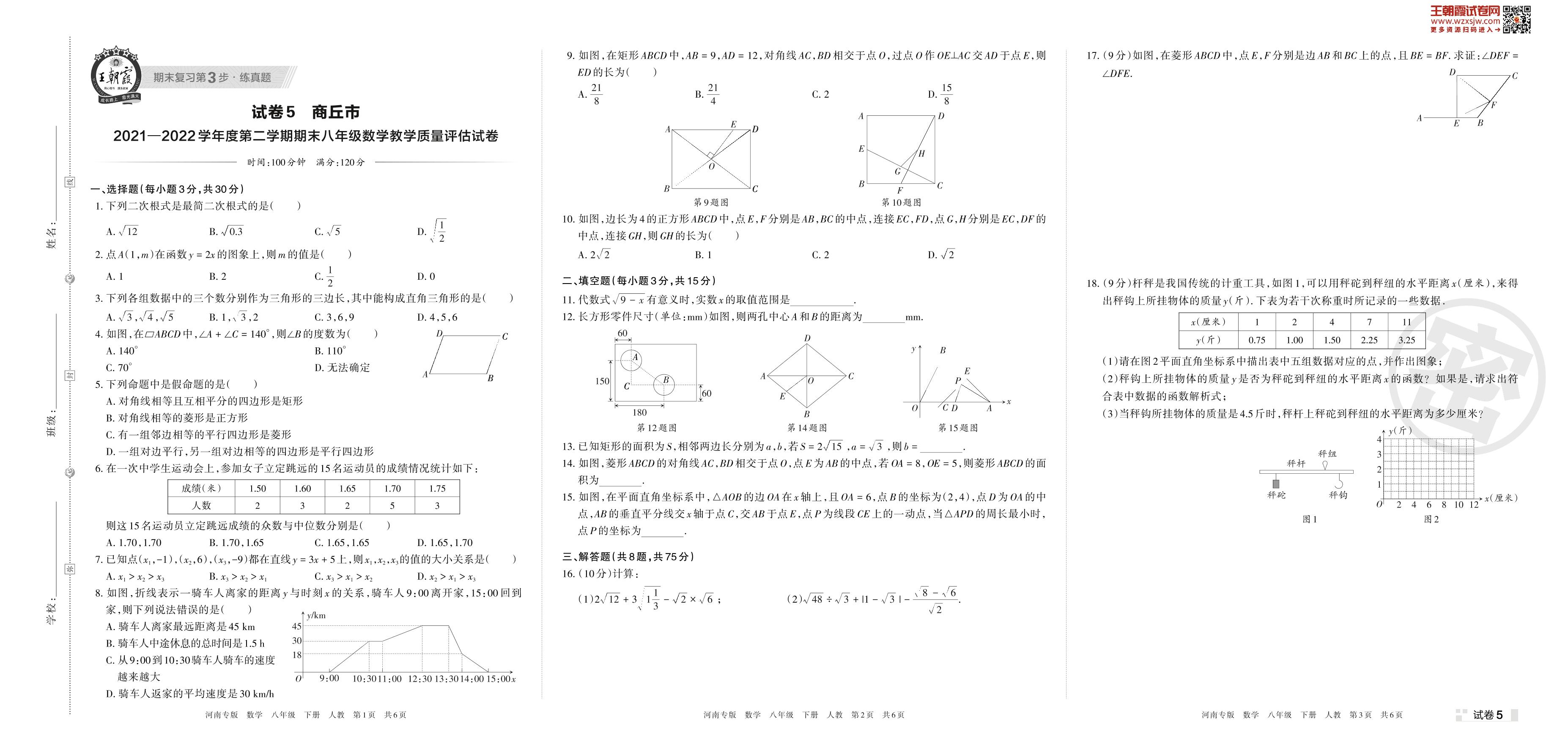 商丘市2021—2022学年度第二学期期末八年级数学教学质量评估试卷(人教版)【5】