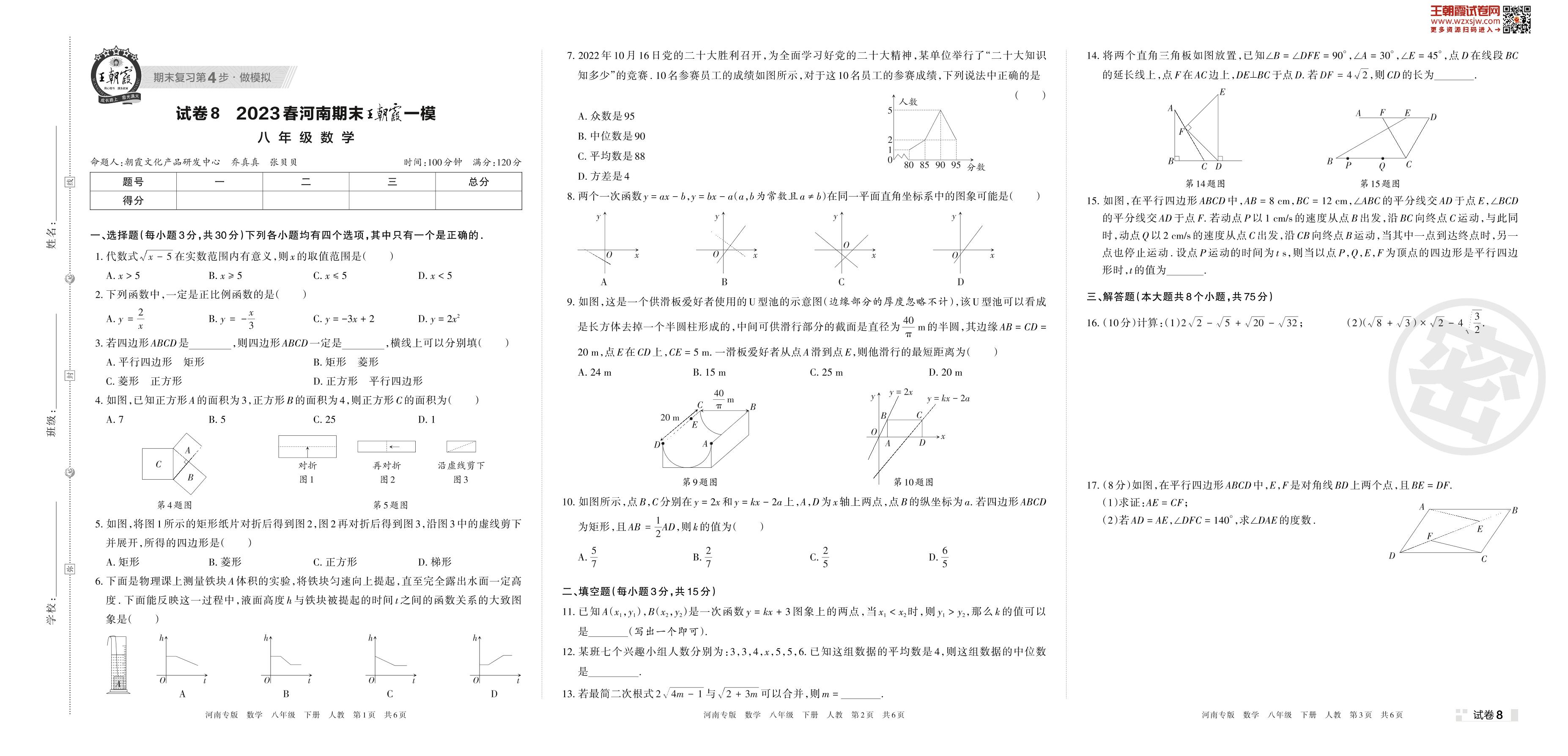 王朝霞期末模拟卷八年级下册数学(人教版)_R230426100132224【8】