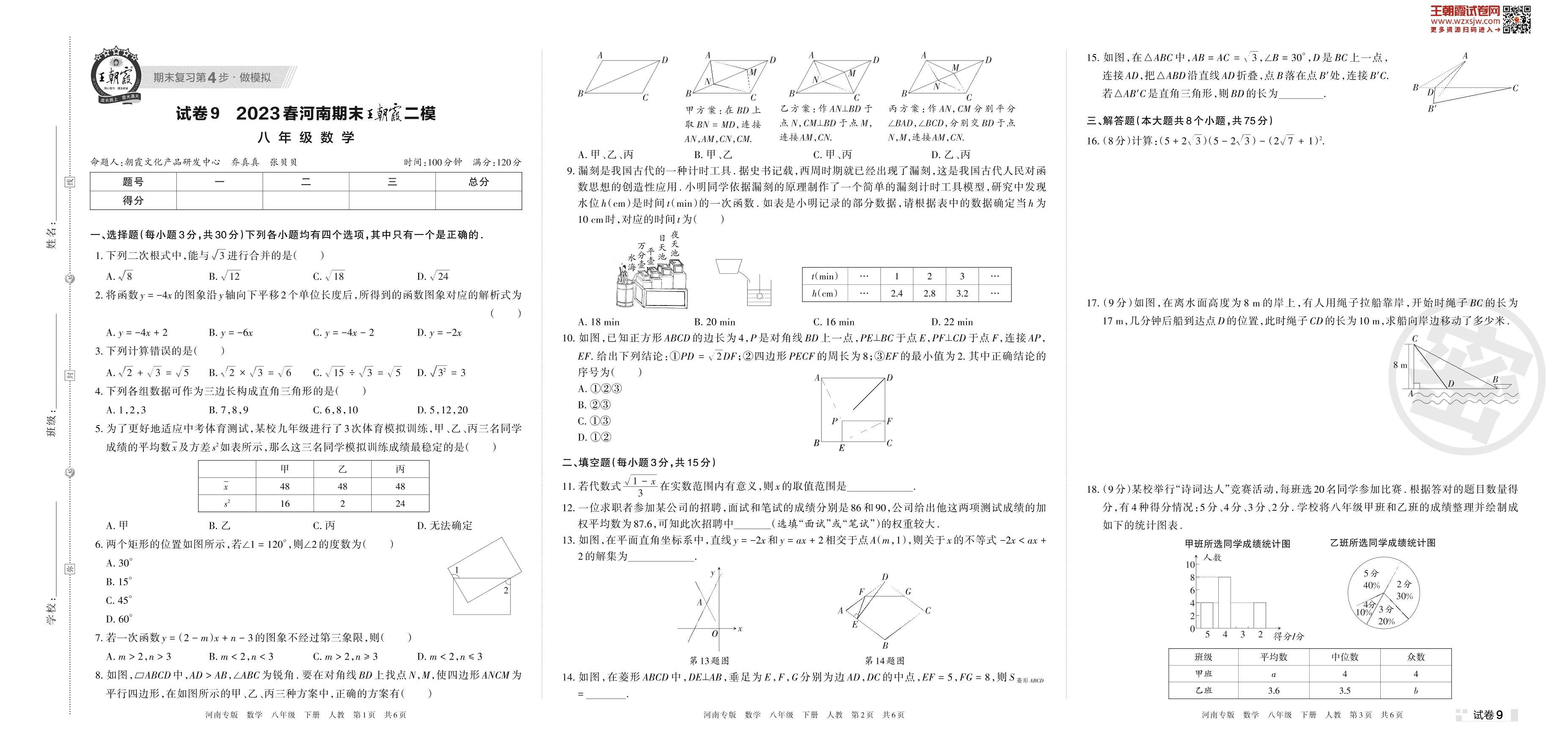 王朝霞期末模拟卷八年级下册数学(人教版)_R230426100132612【9】