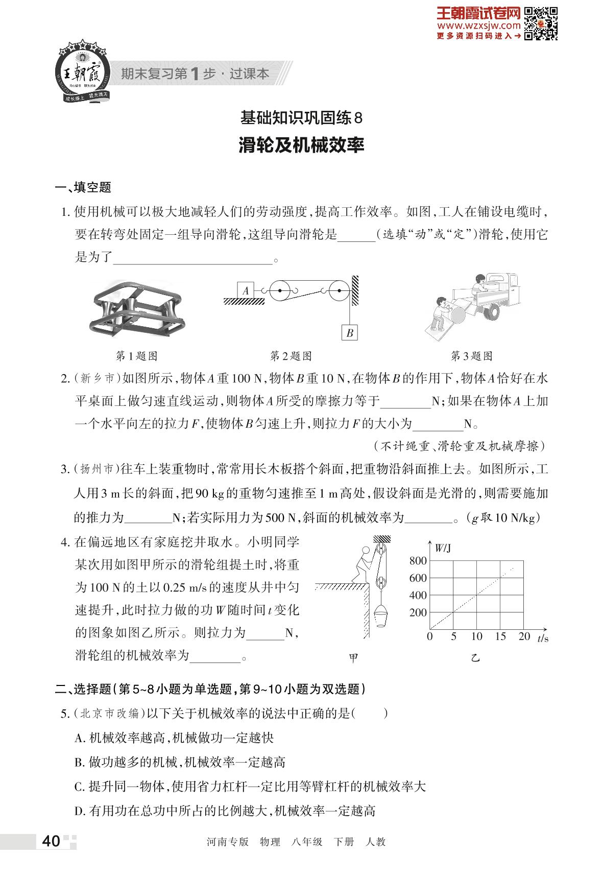 王朝霞期末过课本——基础知识巩固练8 滑轮及机械效率八年级下册物理(人教版)_R230426100825701