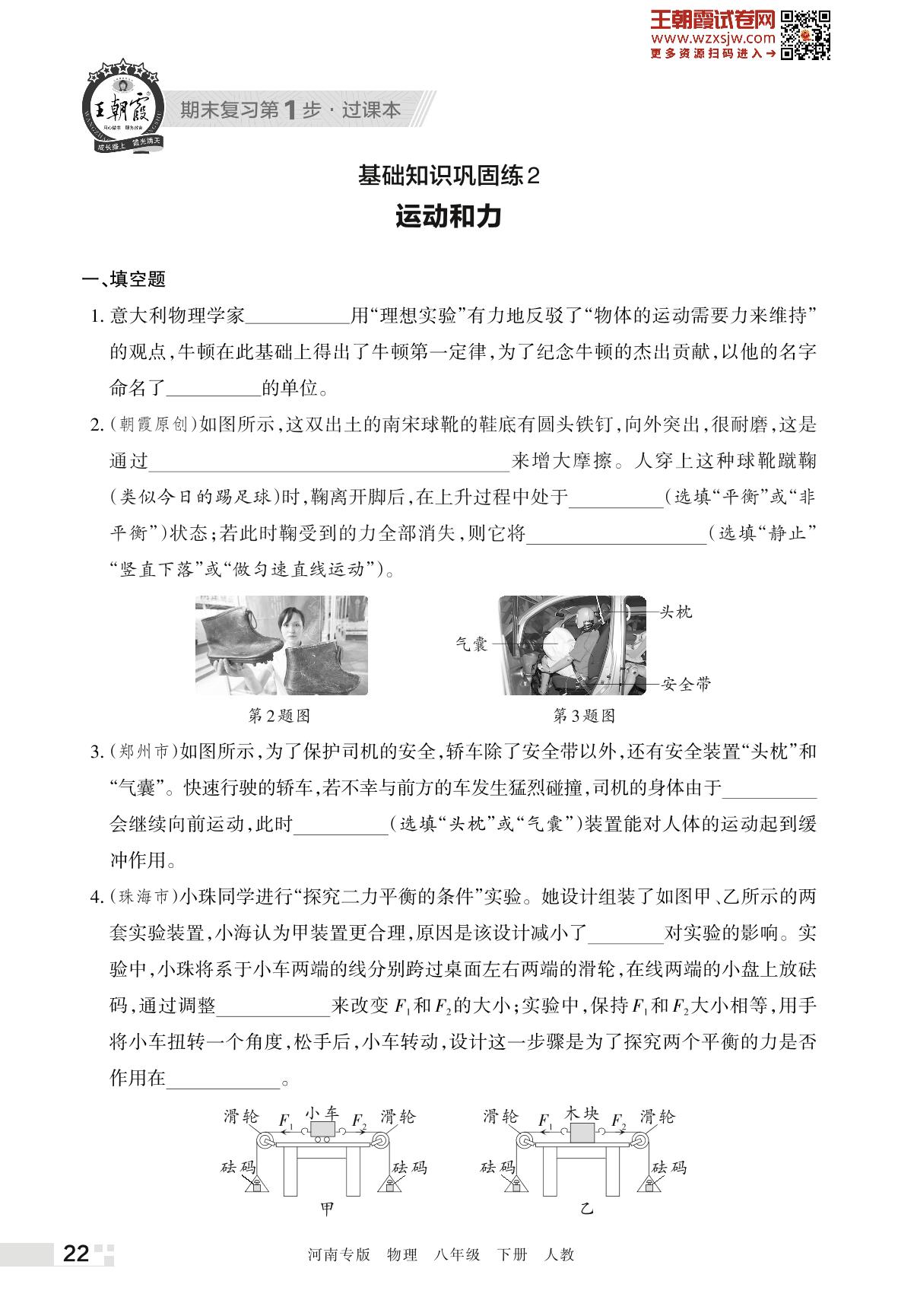 王朝霞期末过课本——基础知识巩固练2 运动和力八年级下册物理(人教版)_R230426100826609