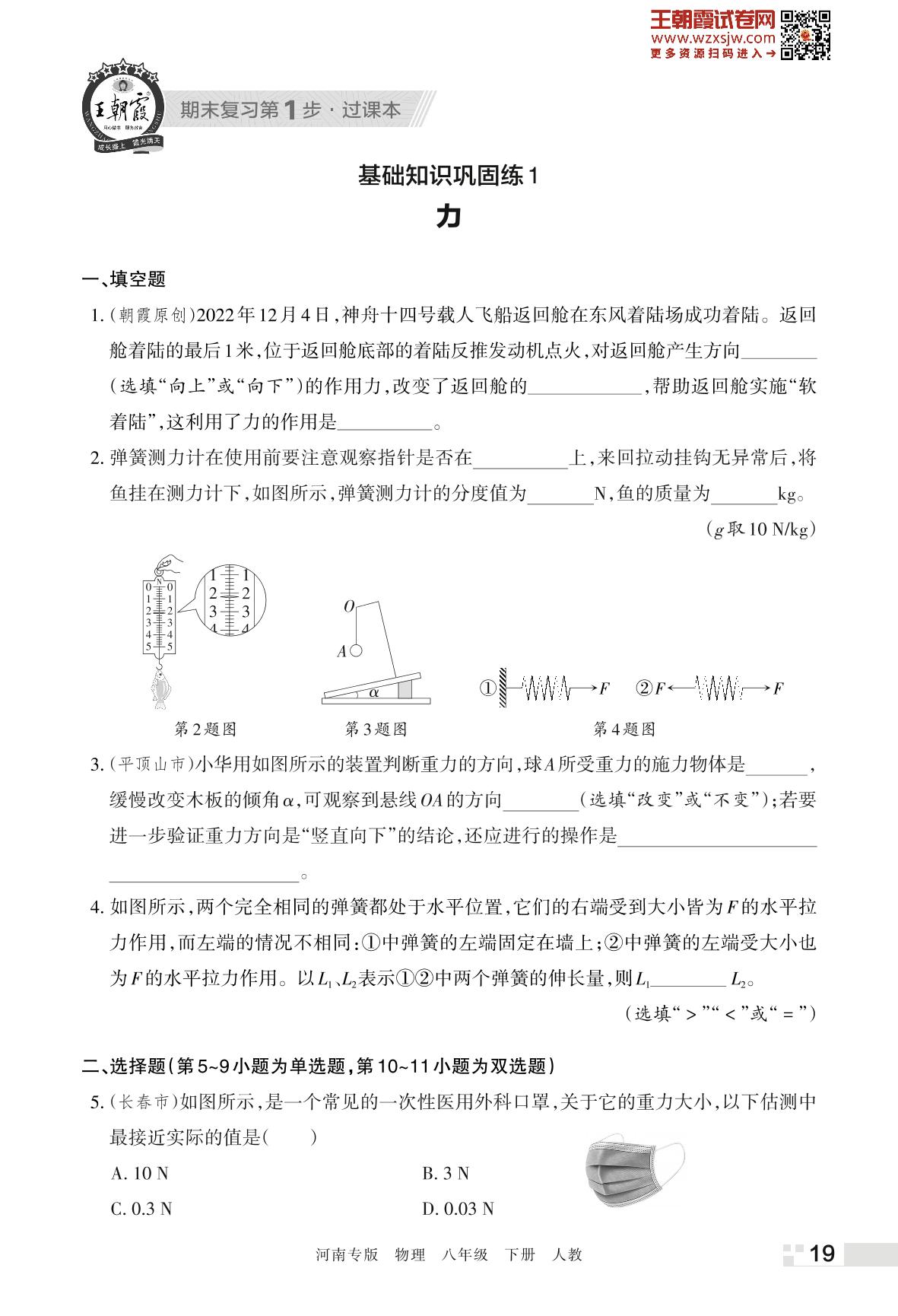 王朝霞期末过课本——基础知识巩固练1 力八年级下册物理(人教版)_R230426100826309