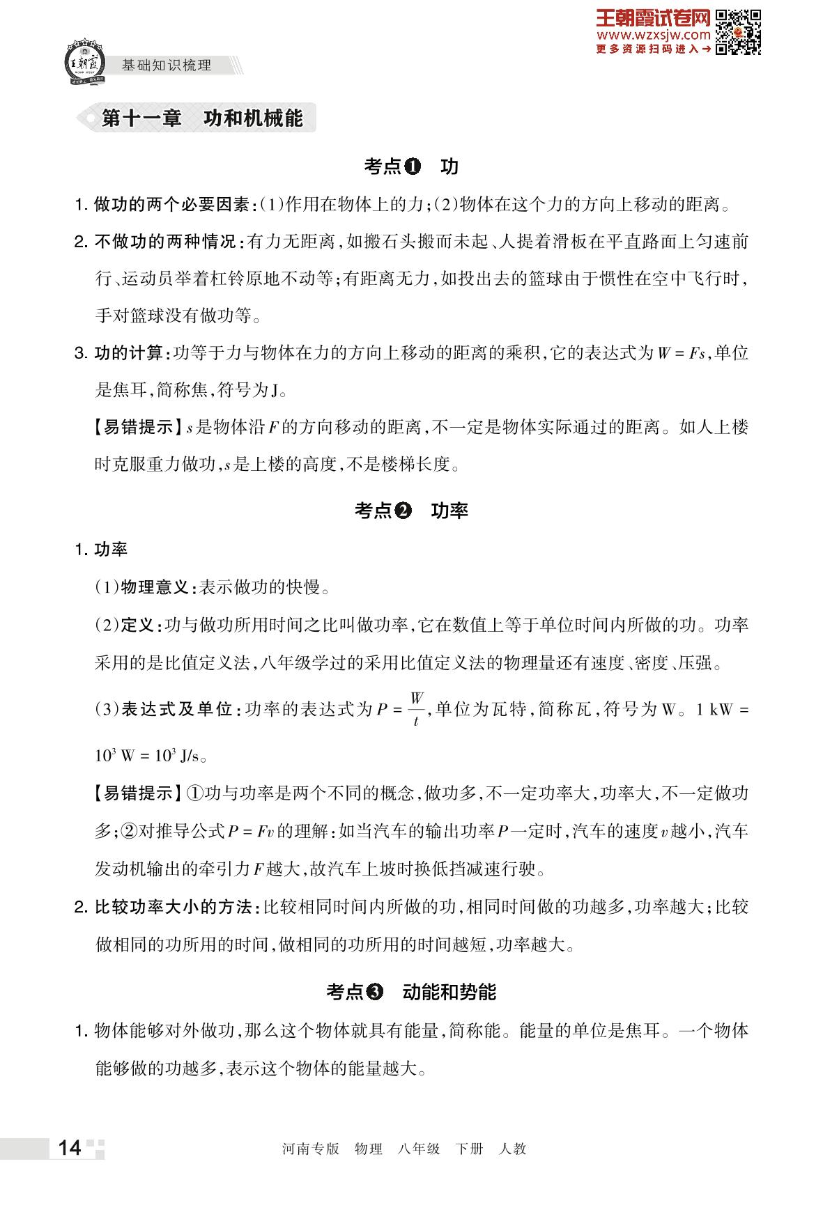 王朝霞期末知识梳理——第十一章 功和机械能八年级下册物理(人教版)_R230426100826635