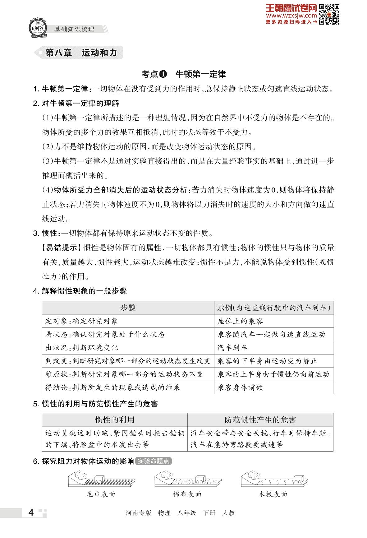 王朝霞期末知识梳理——第八章 运动和力八年级下册物理(人教版)_R230426100827450