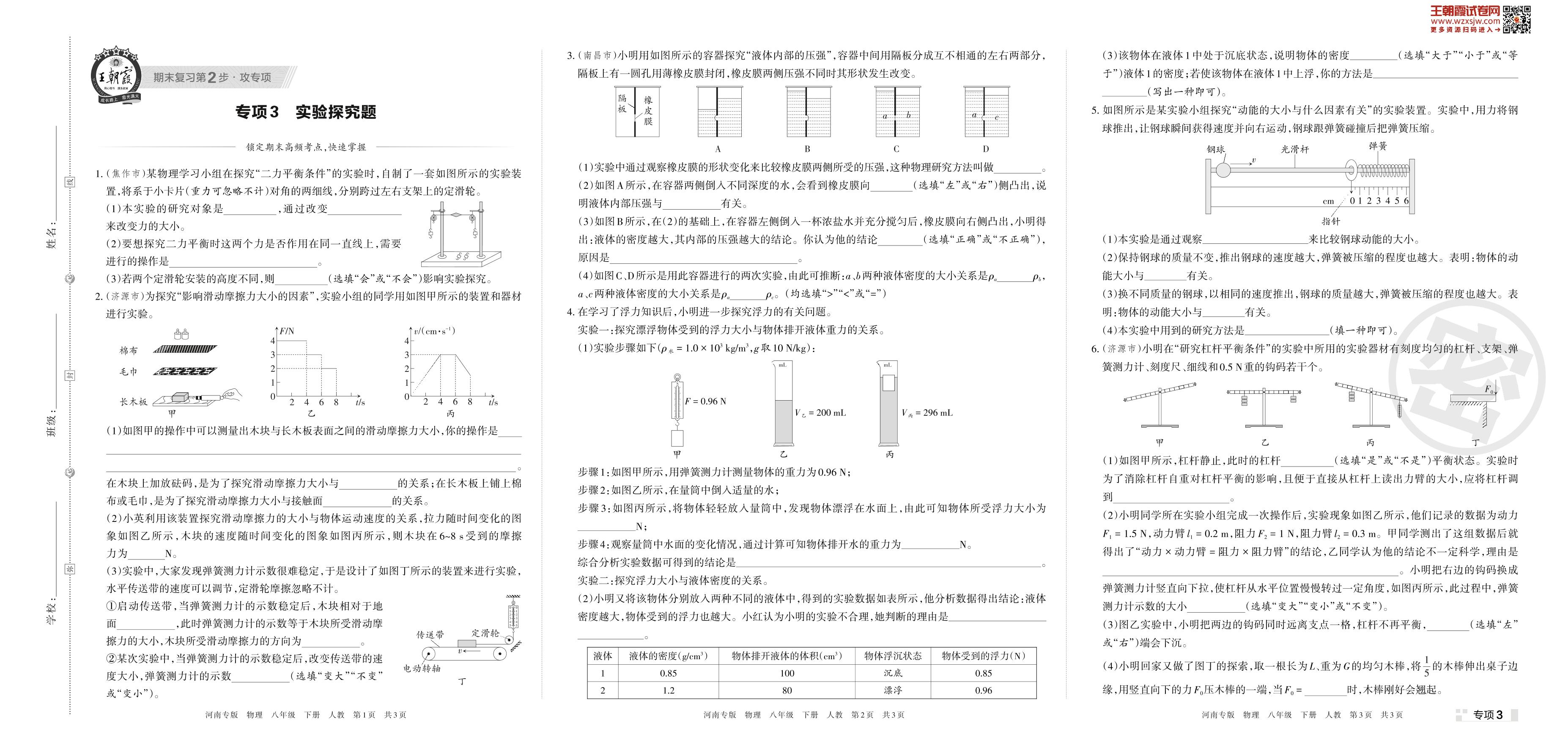 王朝霞期末专项卷——实验探究题八年级下册物理(人教版)_R230426100827780【3】