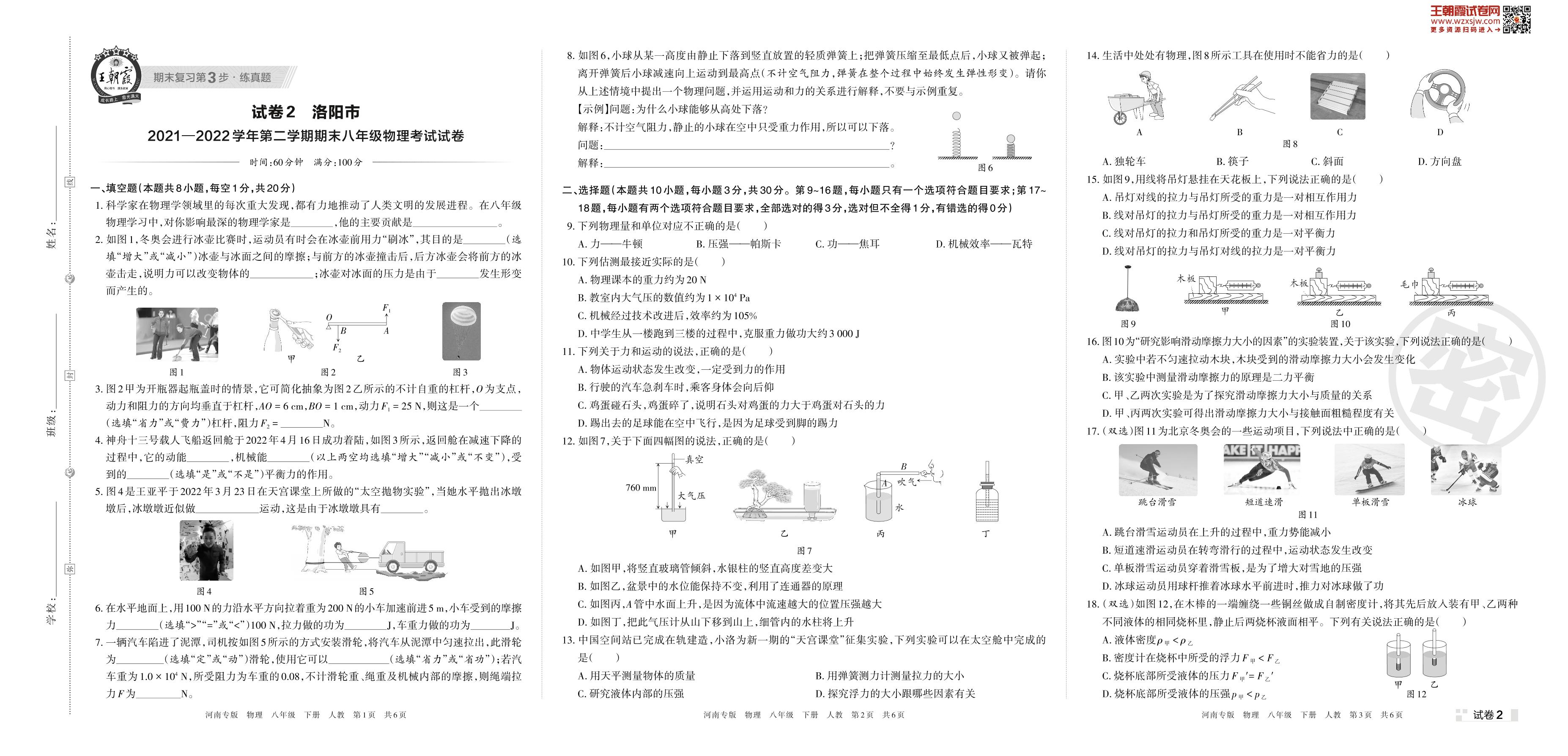 洛阳市2021—2022学年第二学期期末八年级物理考试试卷(人教版)【2】
