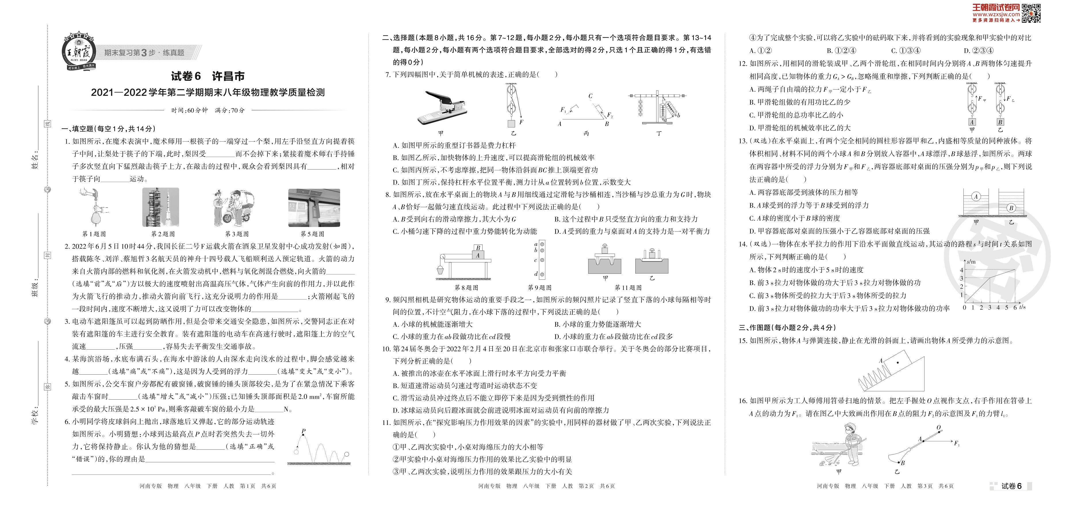八年级物理人教版下册期末卷