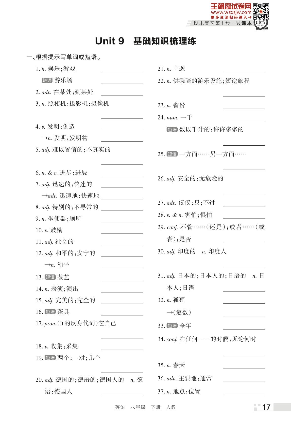 王朝霞期末过课本——Unit 9 基础知识梳理练八年级下册英语(人教版)_R230426102735391