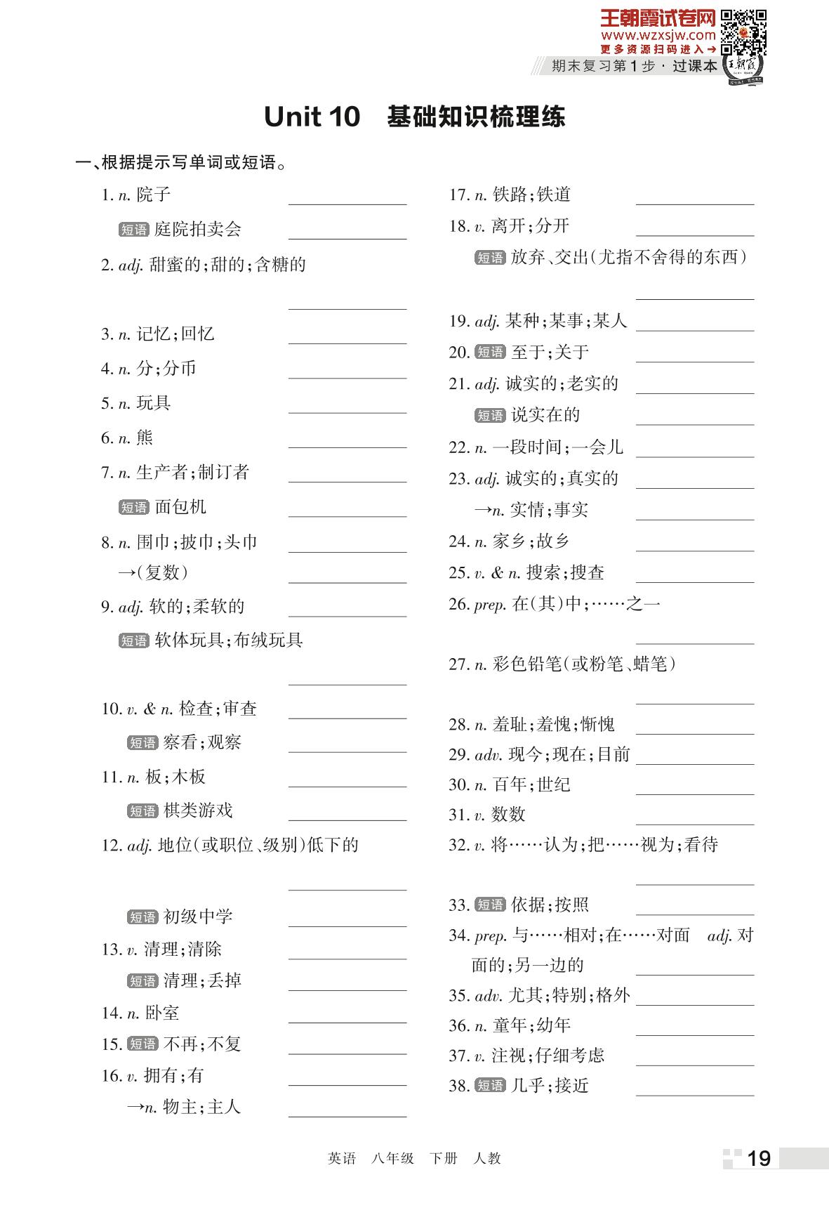 王朝霞期末过课本——Unit 10 基础知识梳理练八年级下册英语(人教版)_R230426102735199