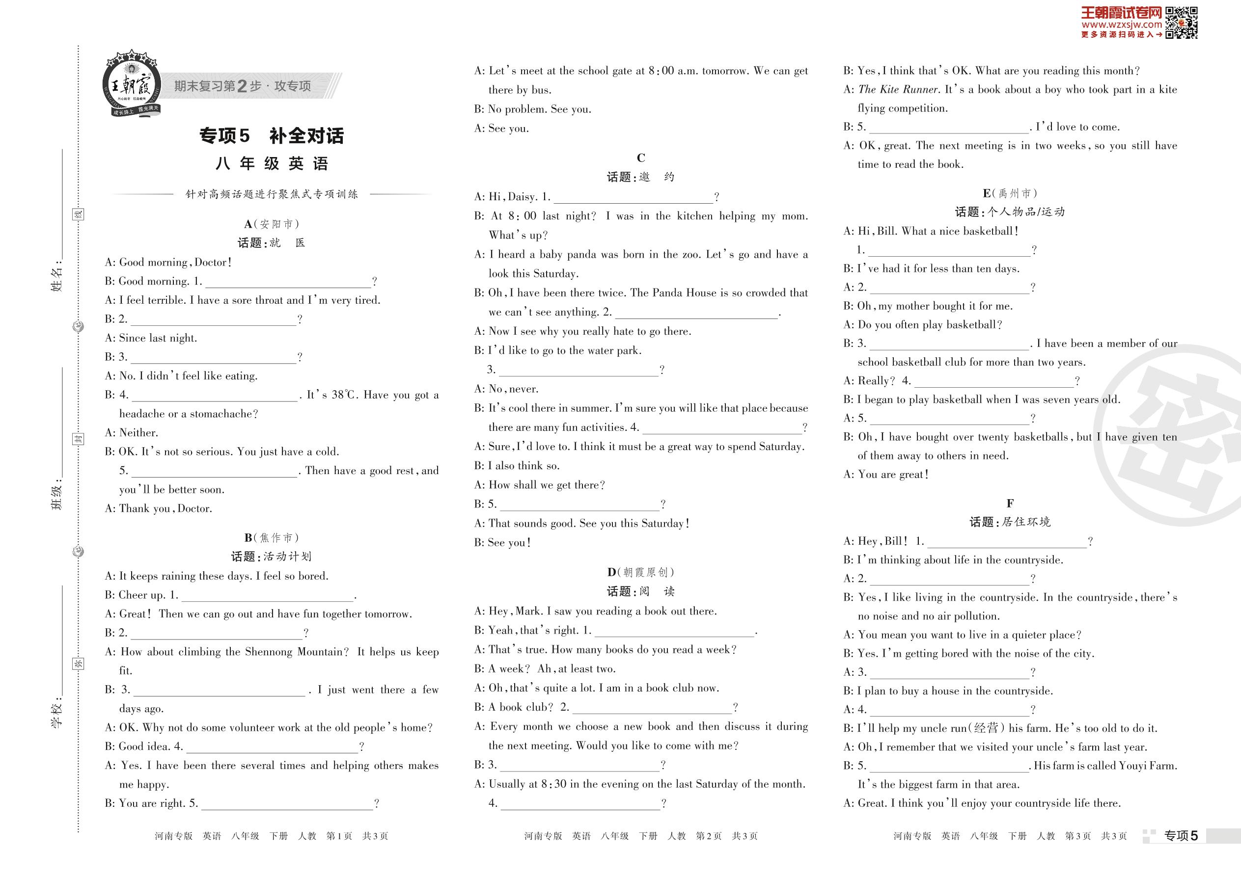 王朝霞期末专项卷——补全对话八年级下册英语(人教版)_R230426102736485【5】